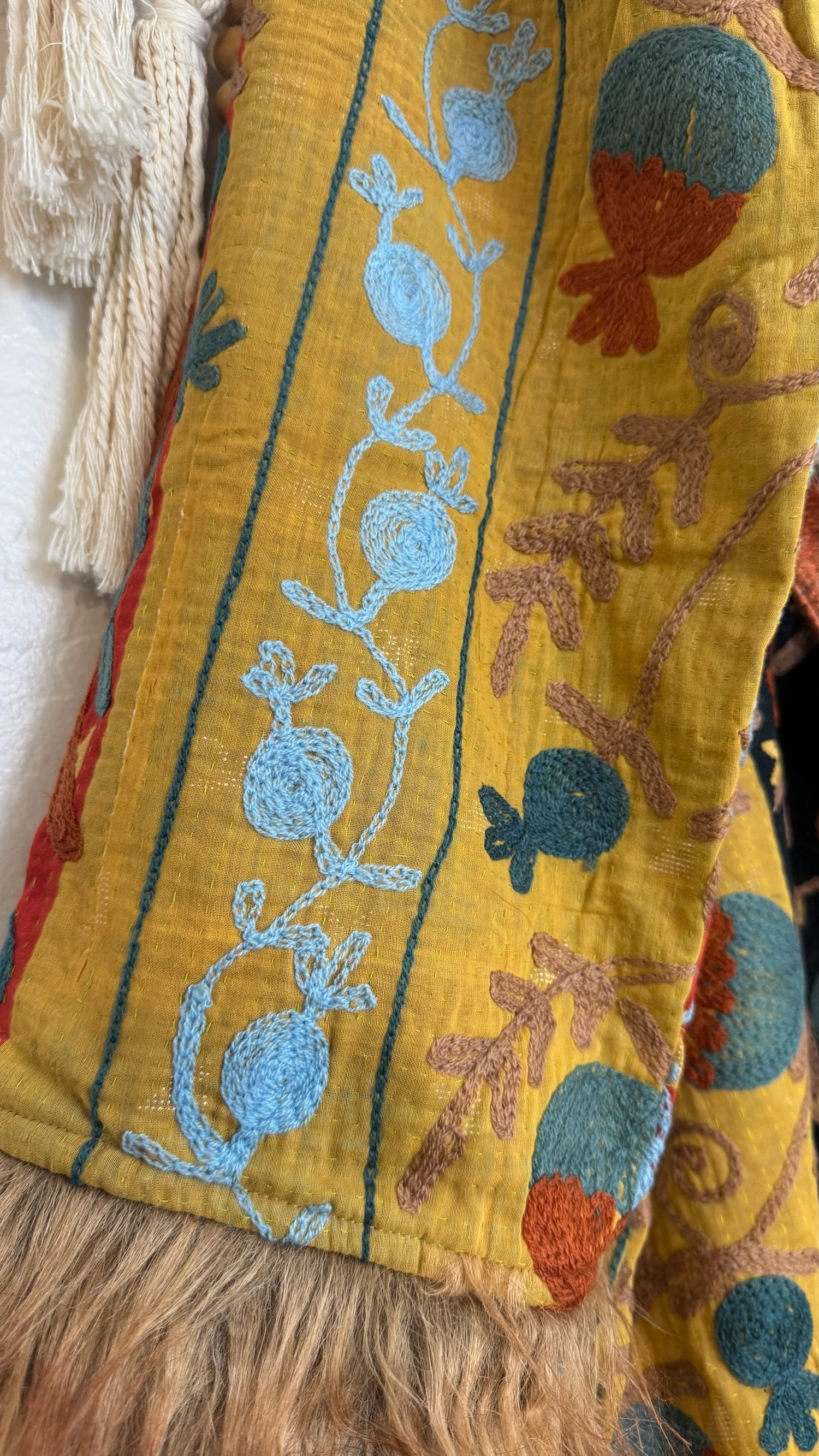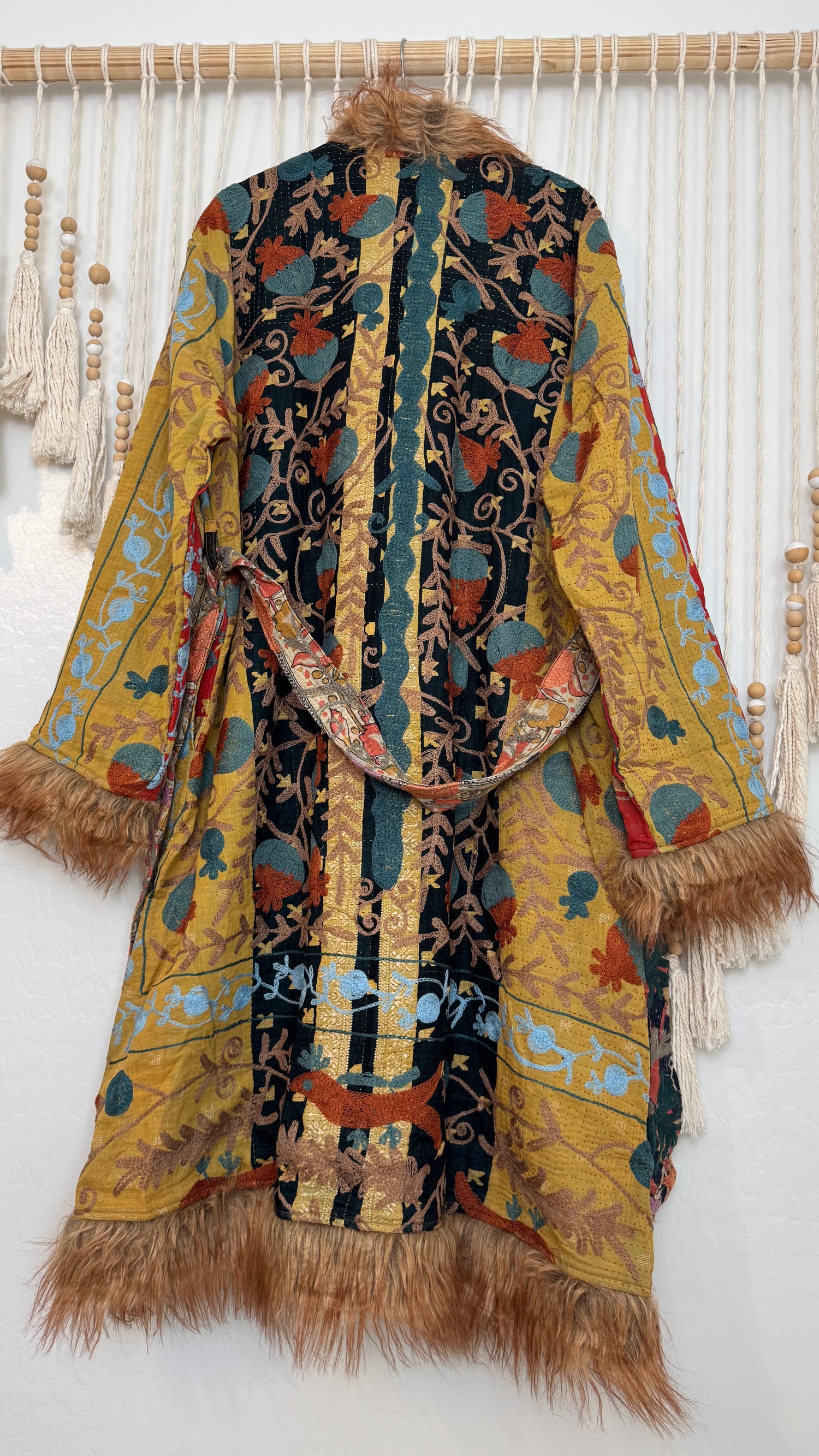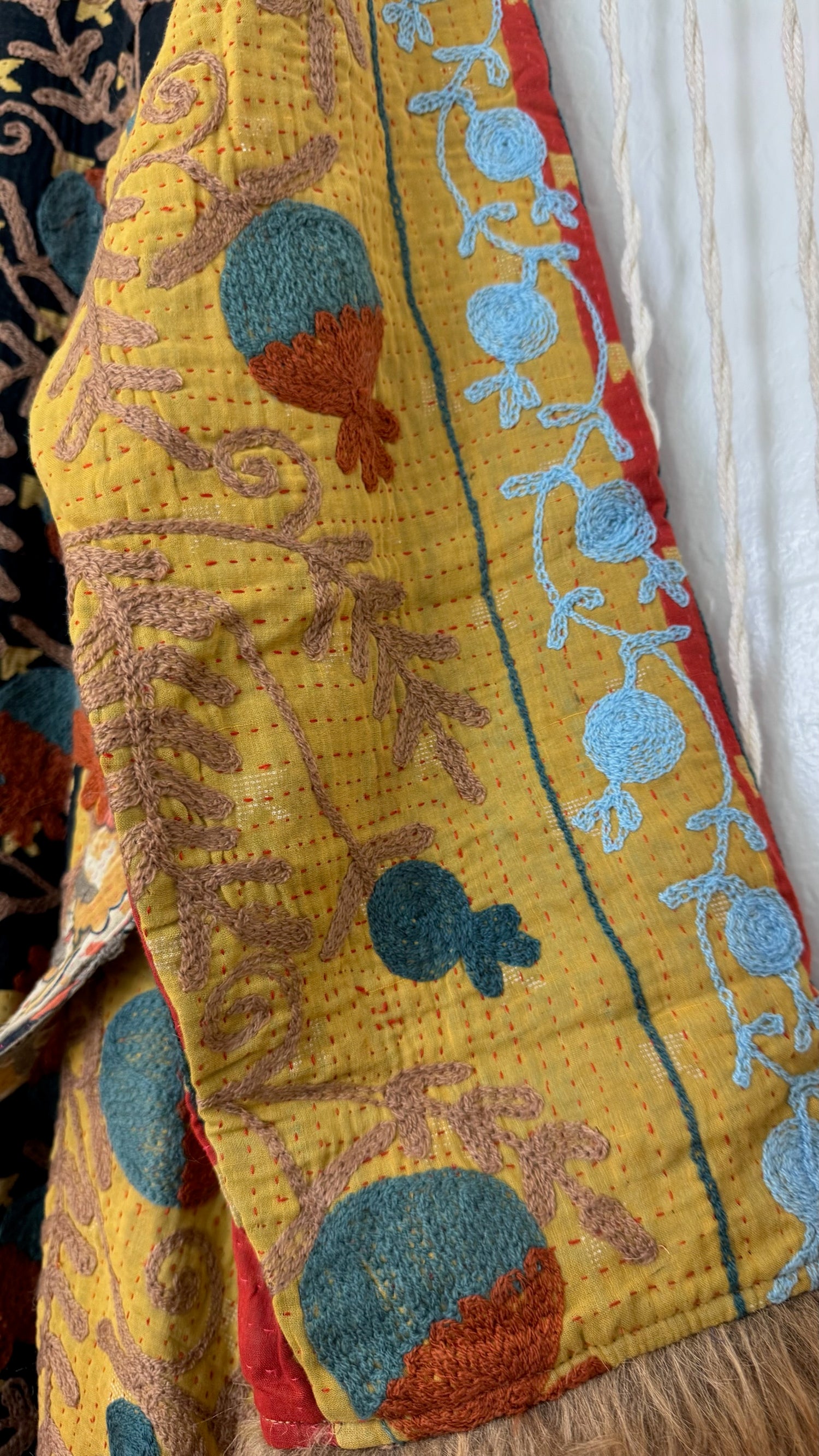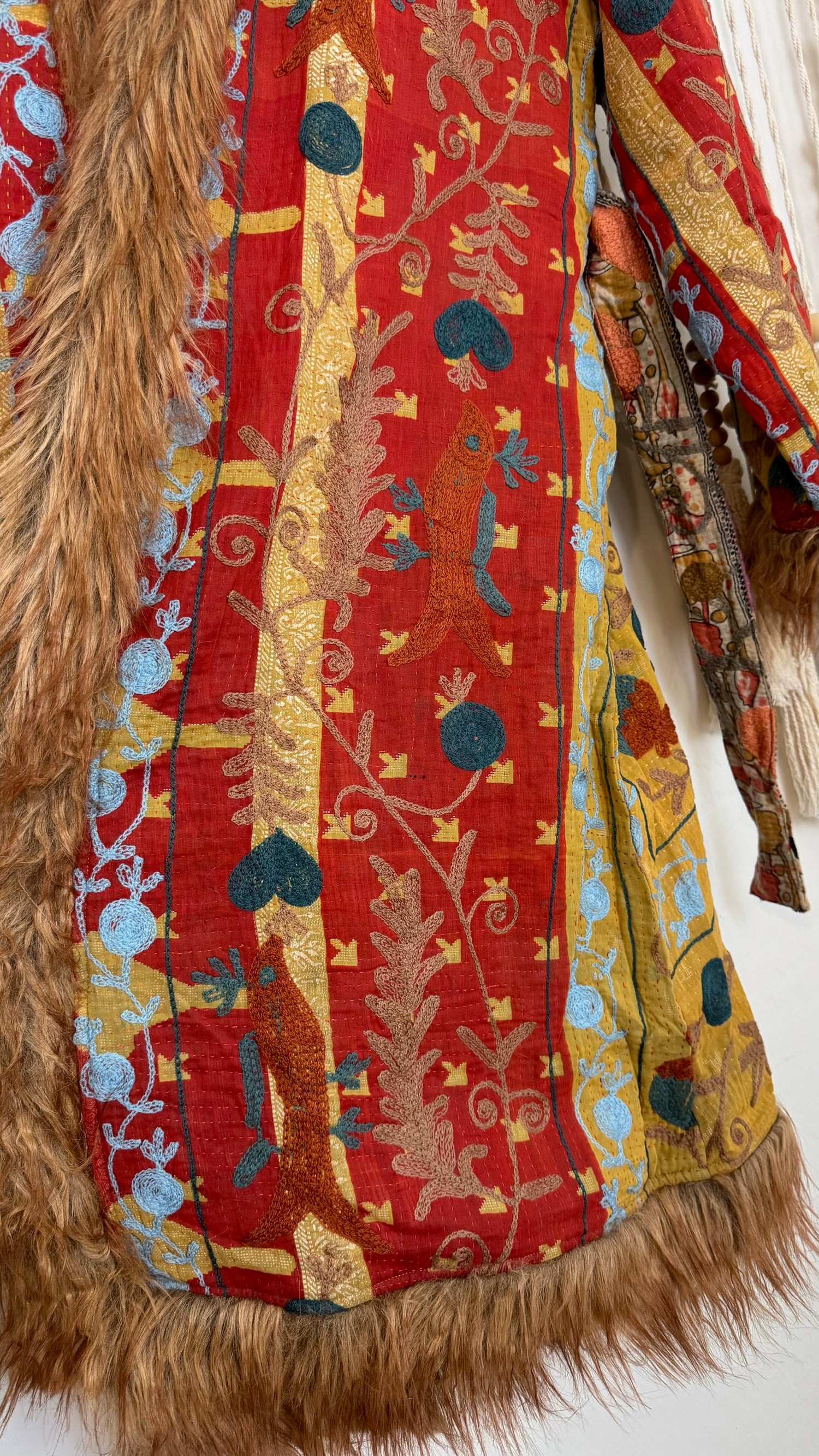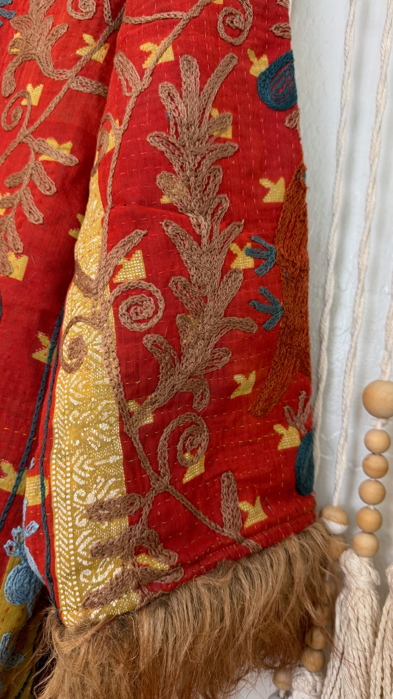 • 100% vintage cotton kantha saris, premium faux fur, and hand block printed cotton lining.