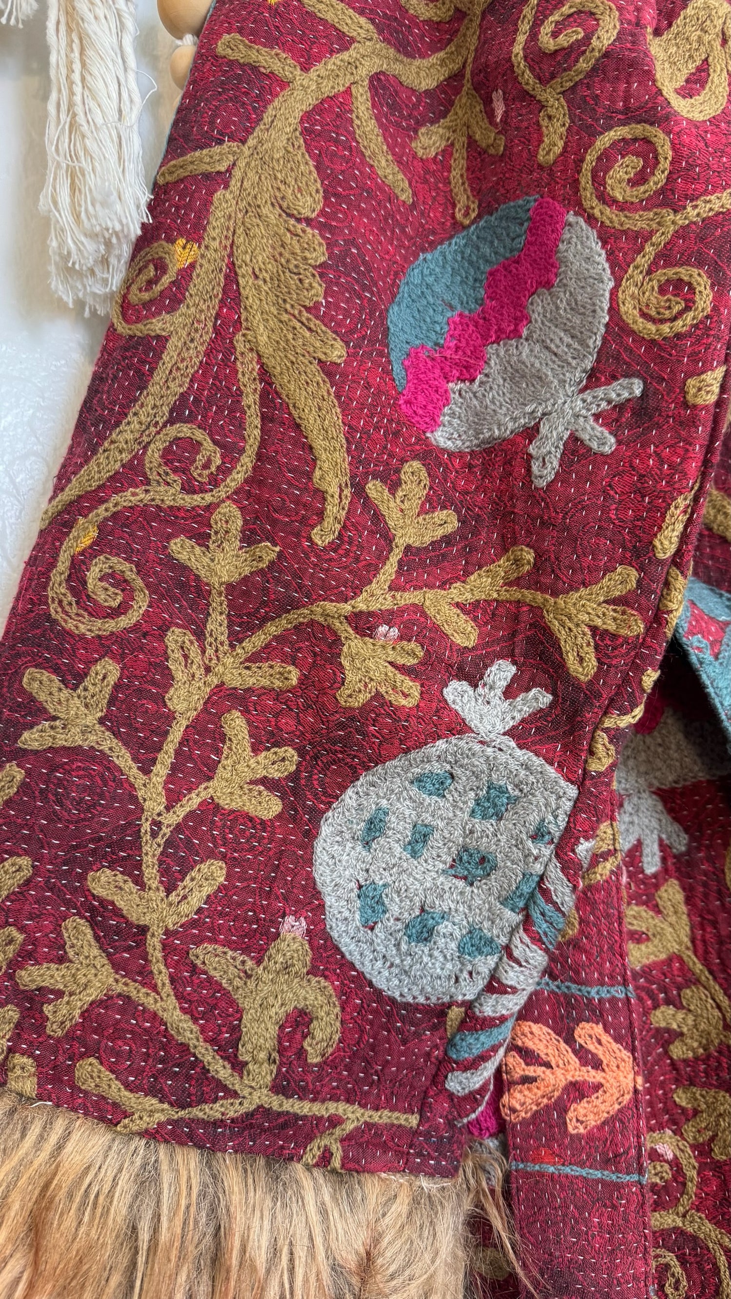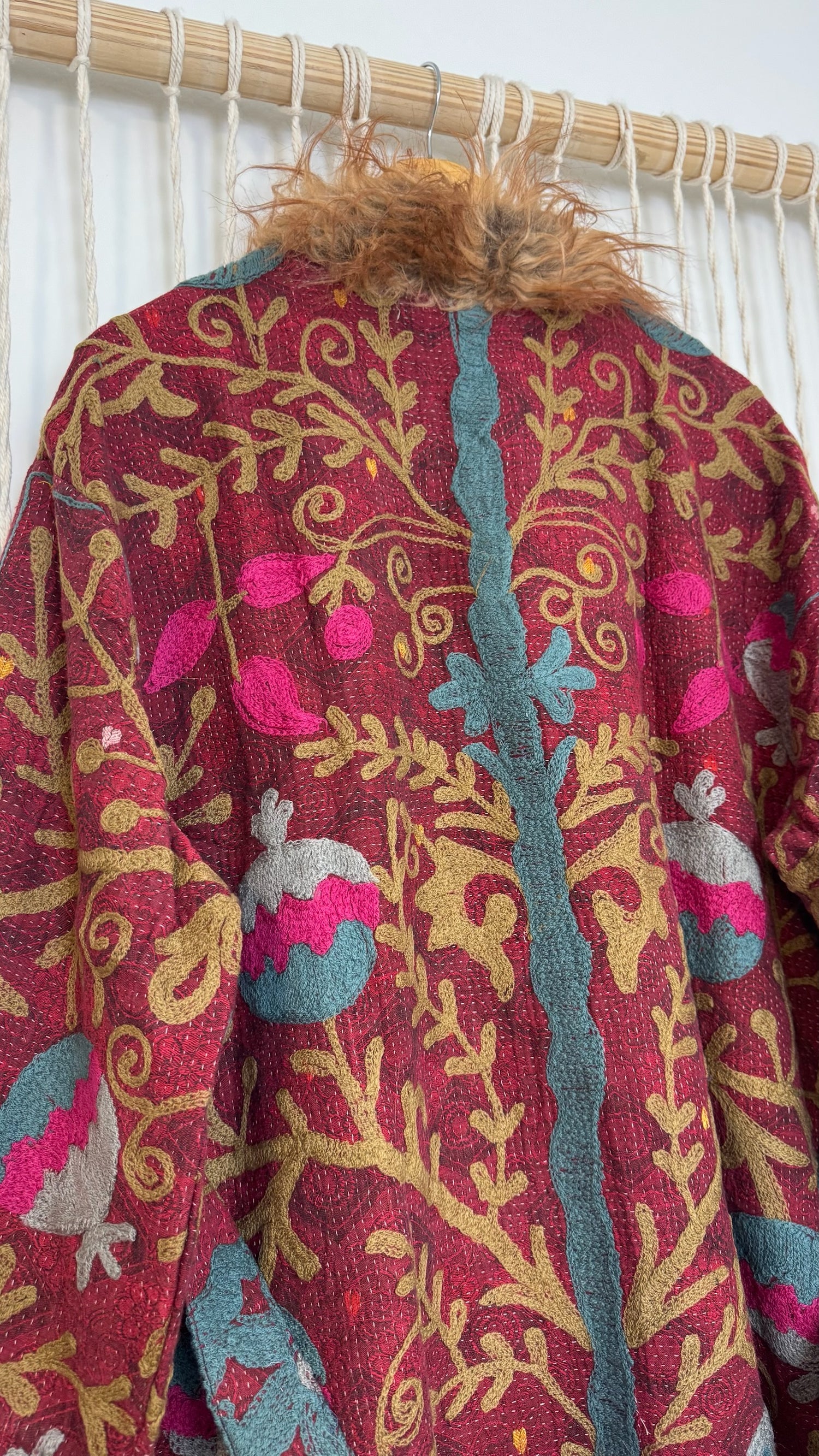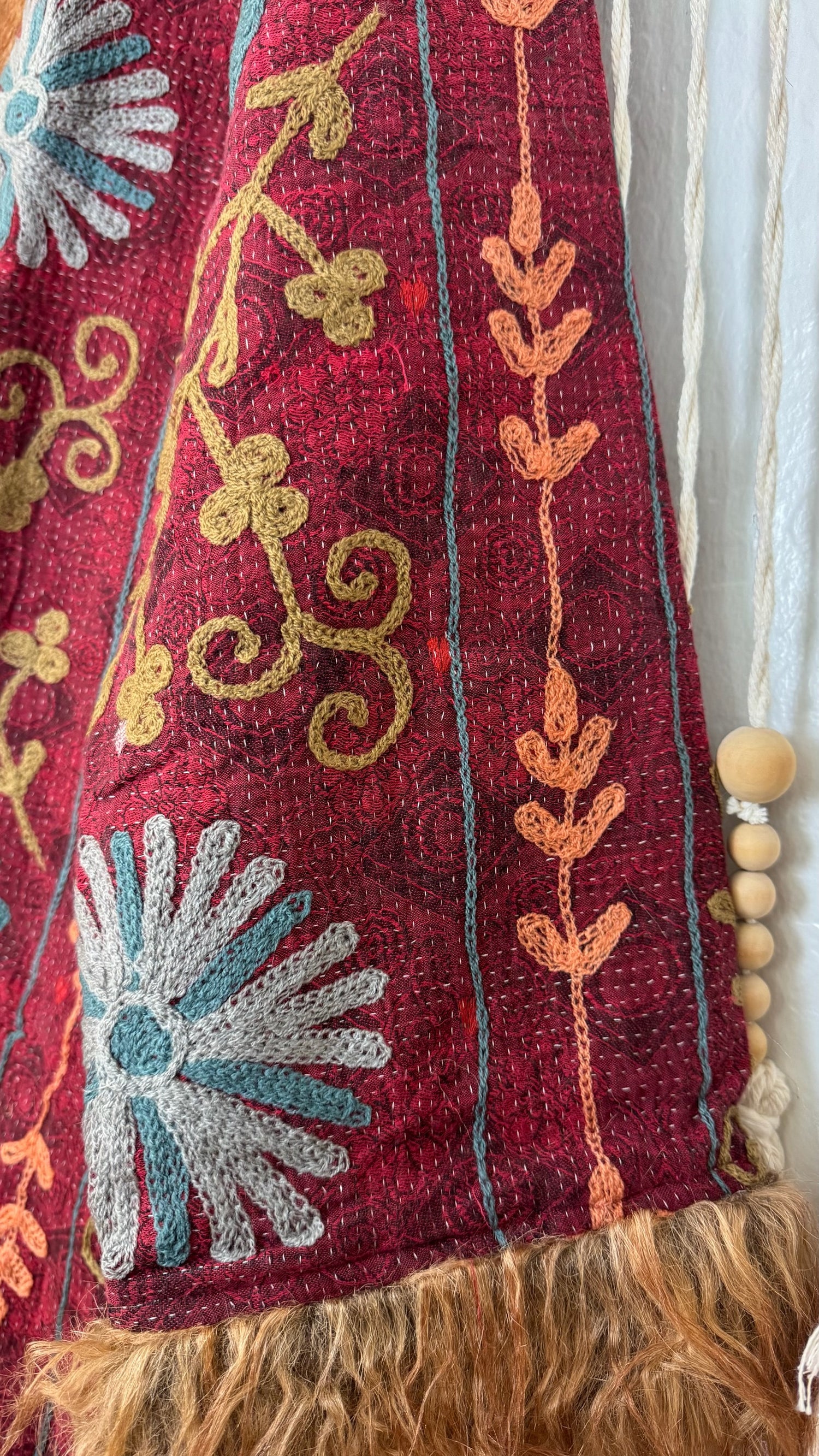 • 100% vintage cotton kantha saris, premium faux fur, and hand block printed cotton lining.