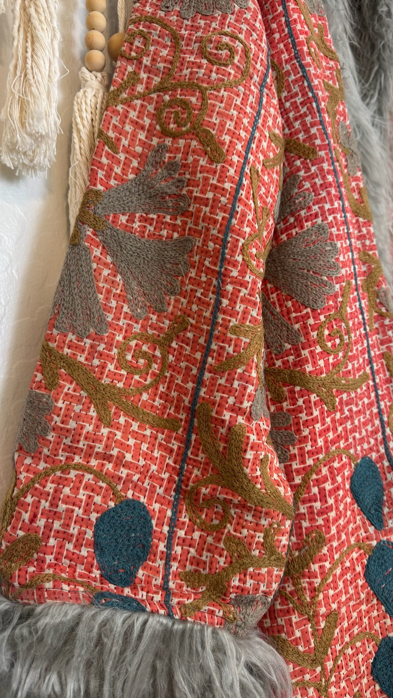 • 100% vintage cotton kantha saris, premium faux fur, and hand block printed cotton lining.