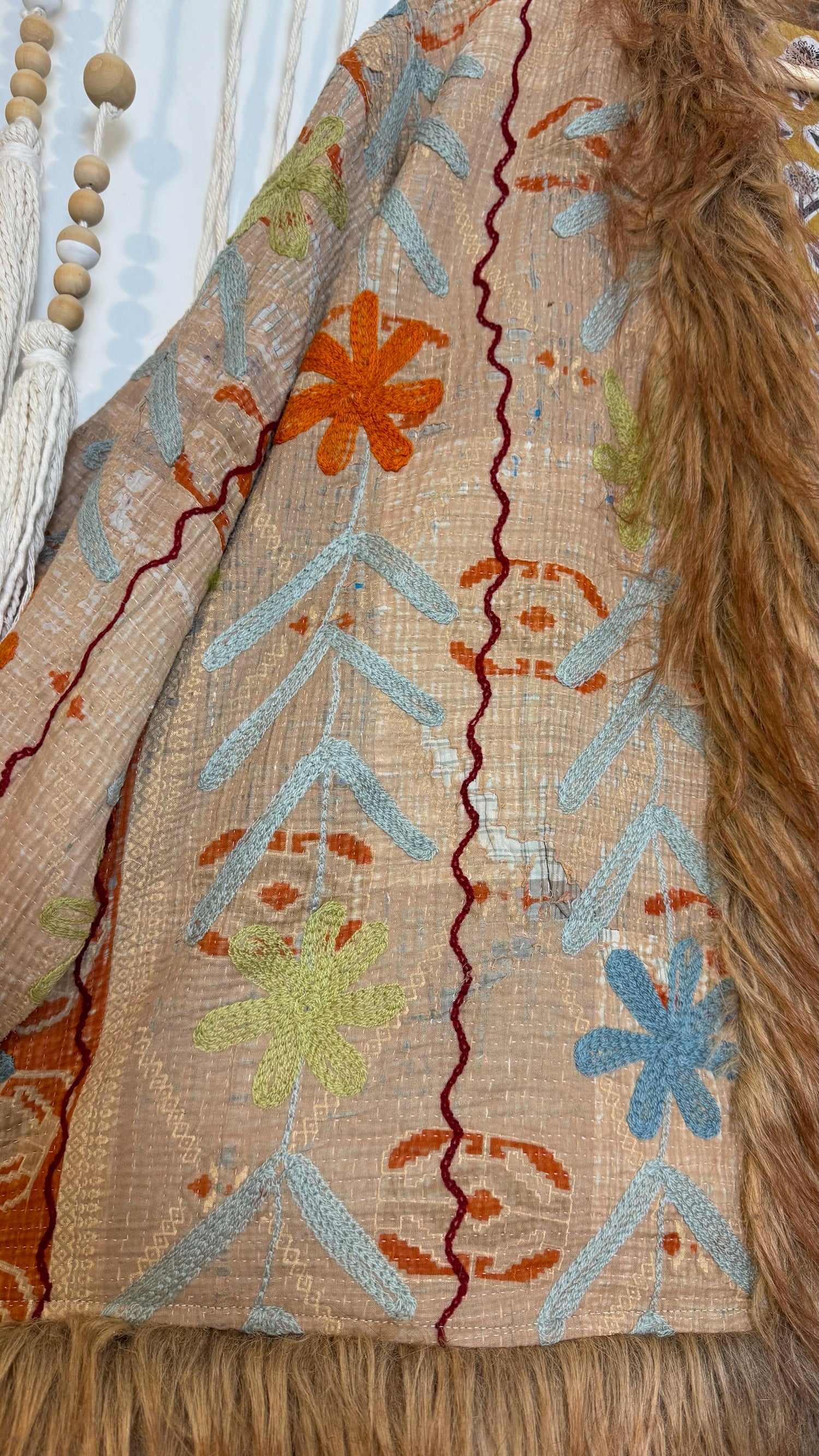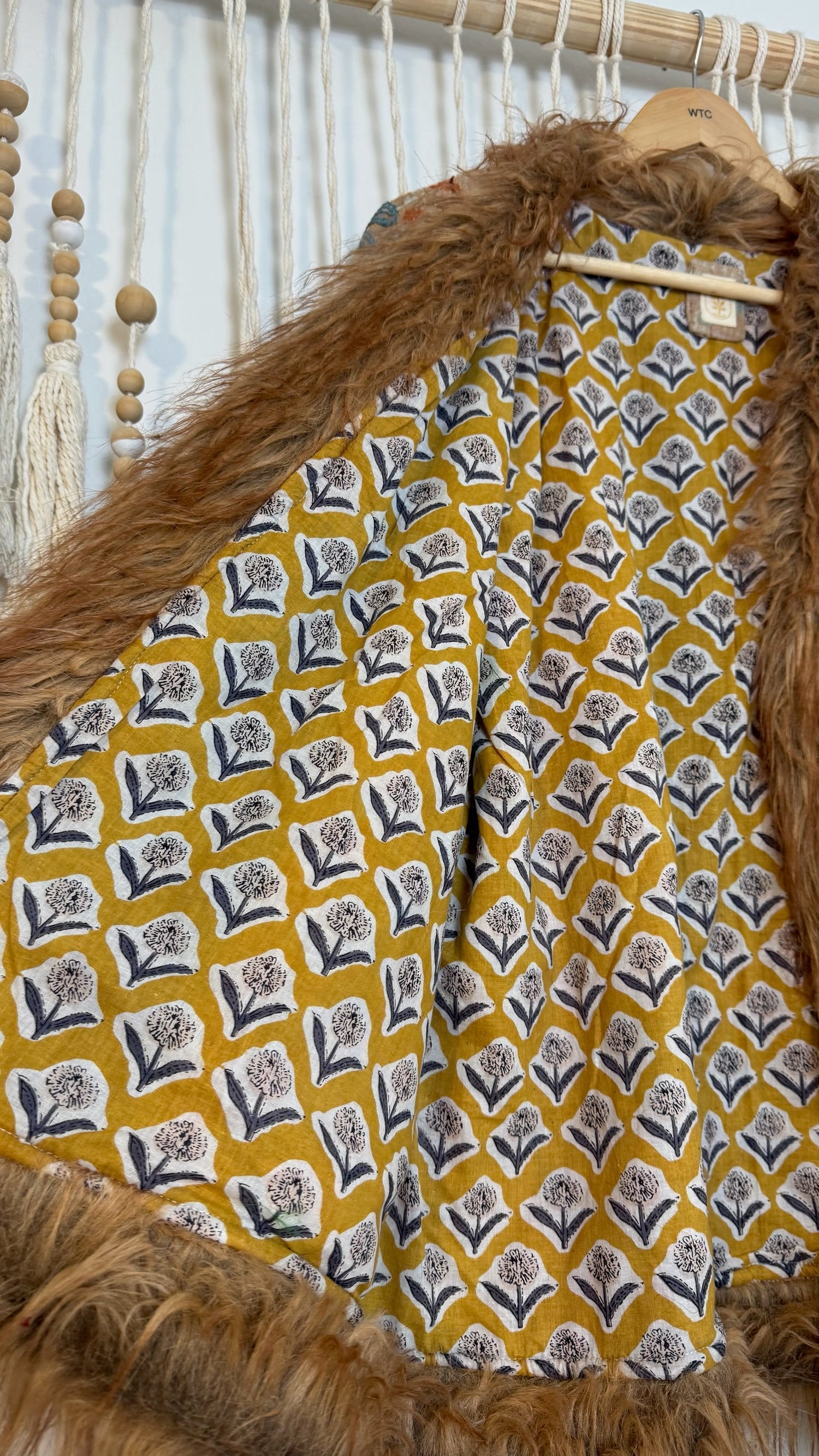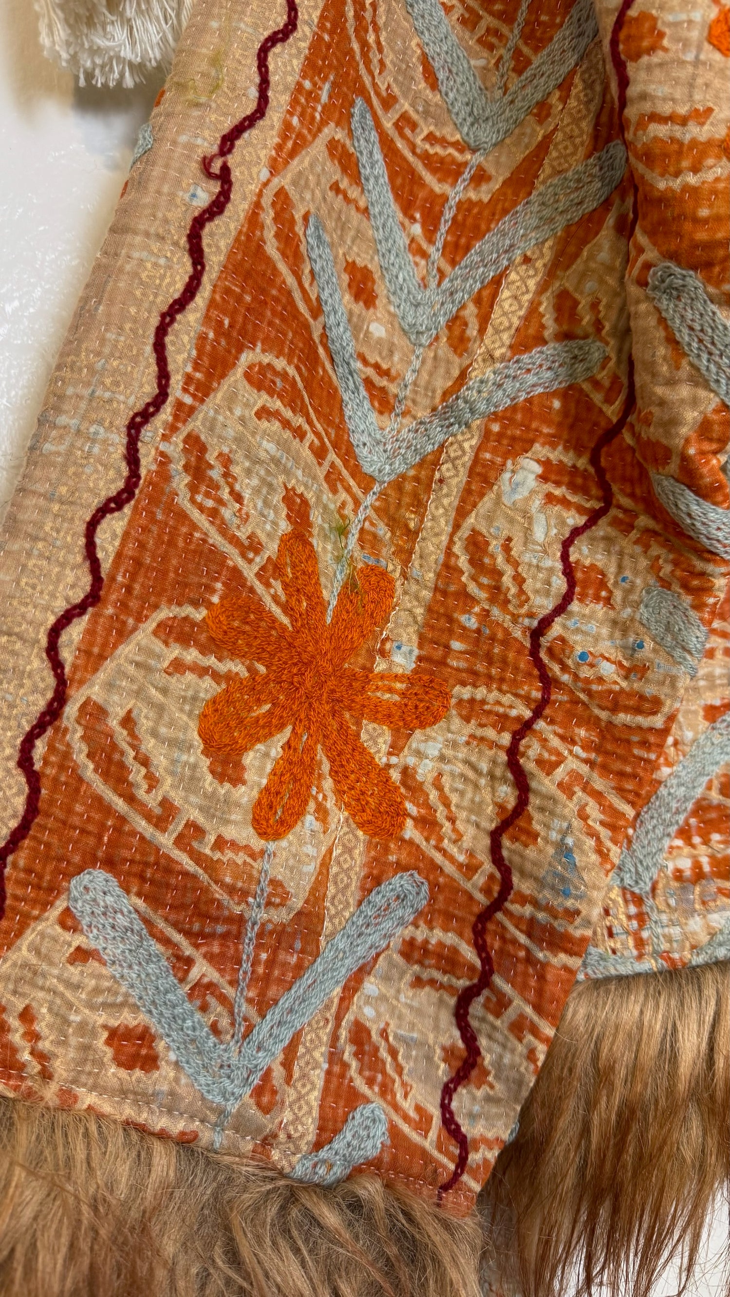 • 100% vintage cotton kantha saris, premium faux fur, and hand block printed cotton lining.