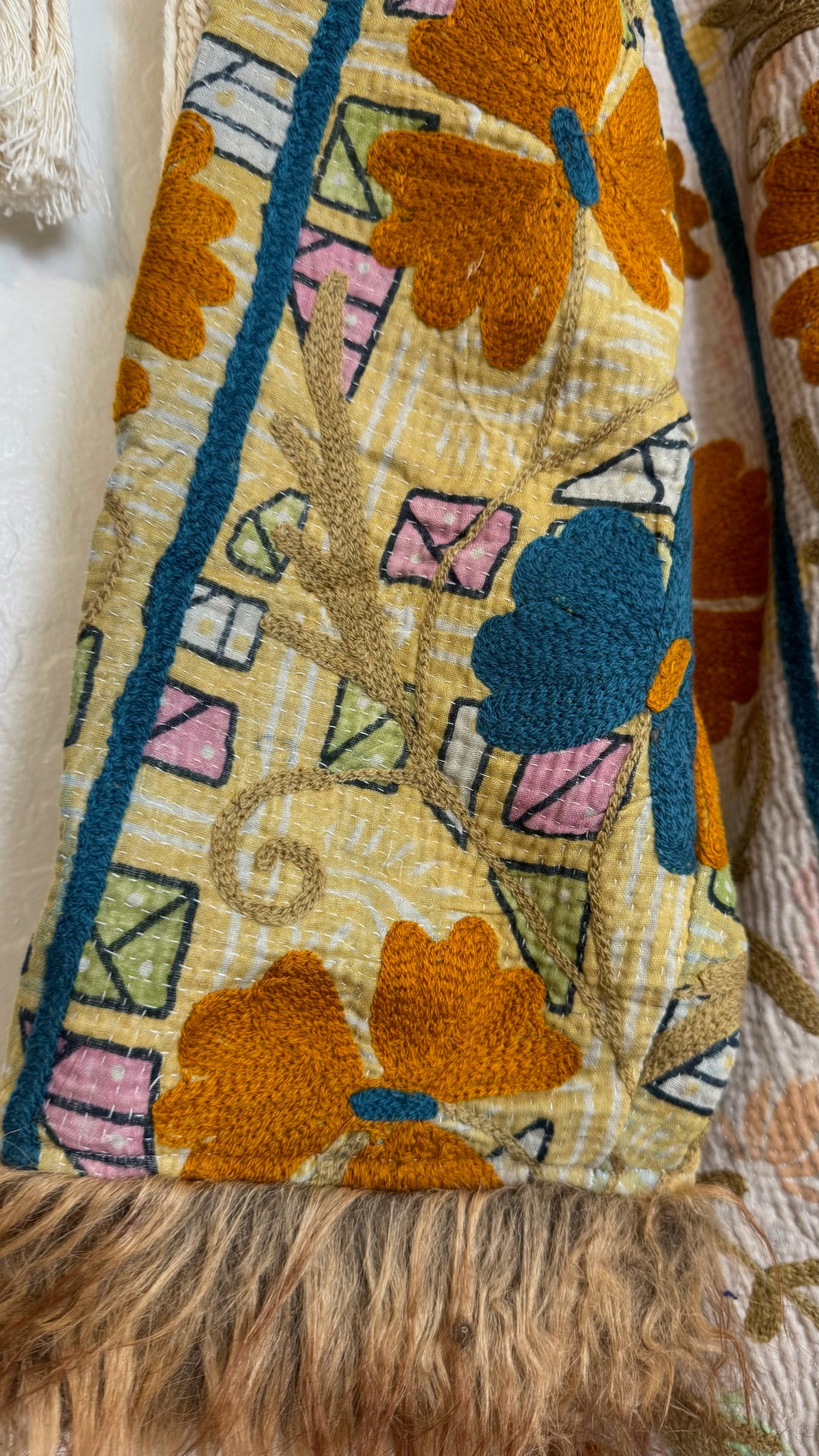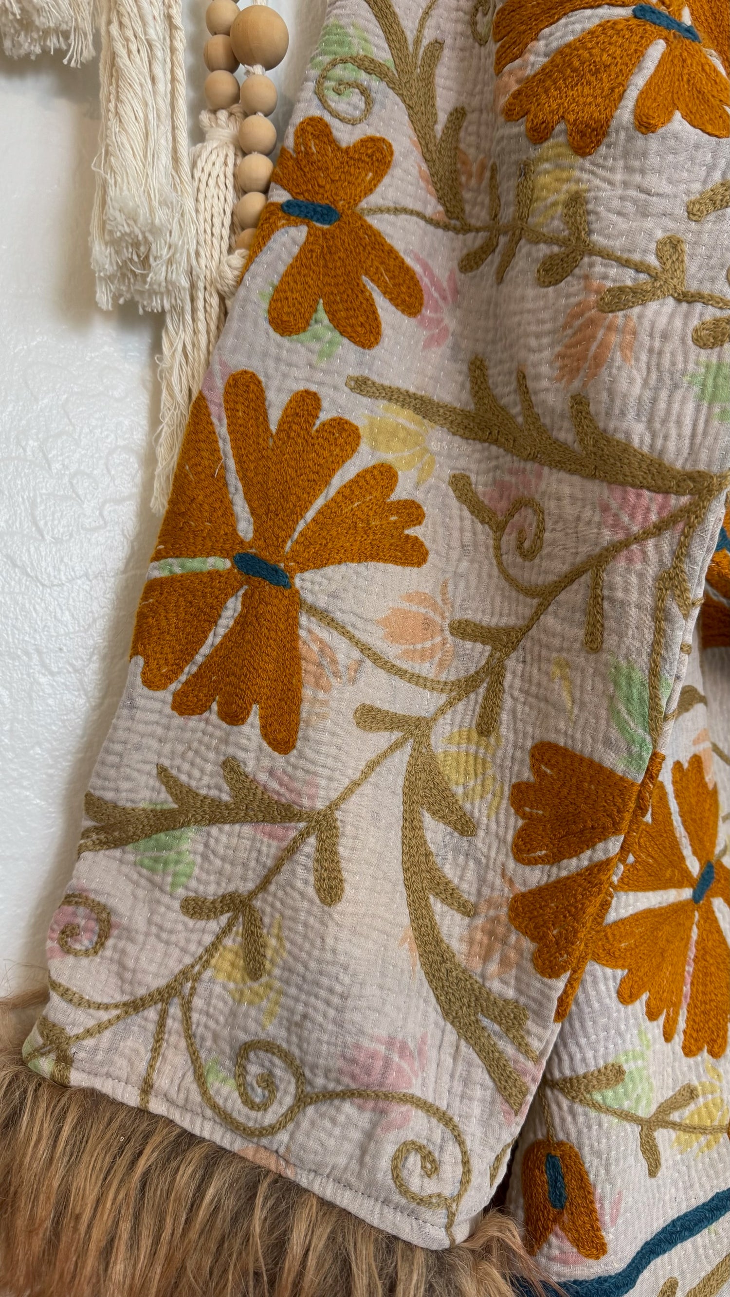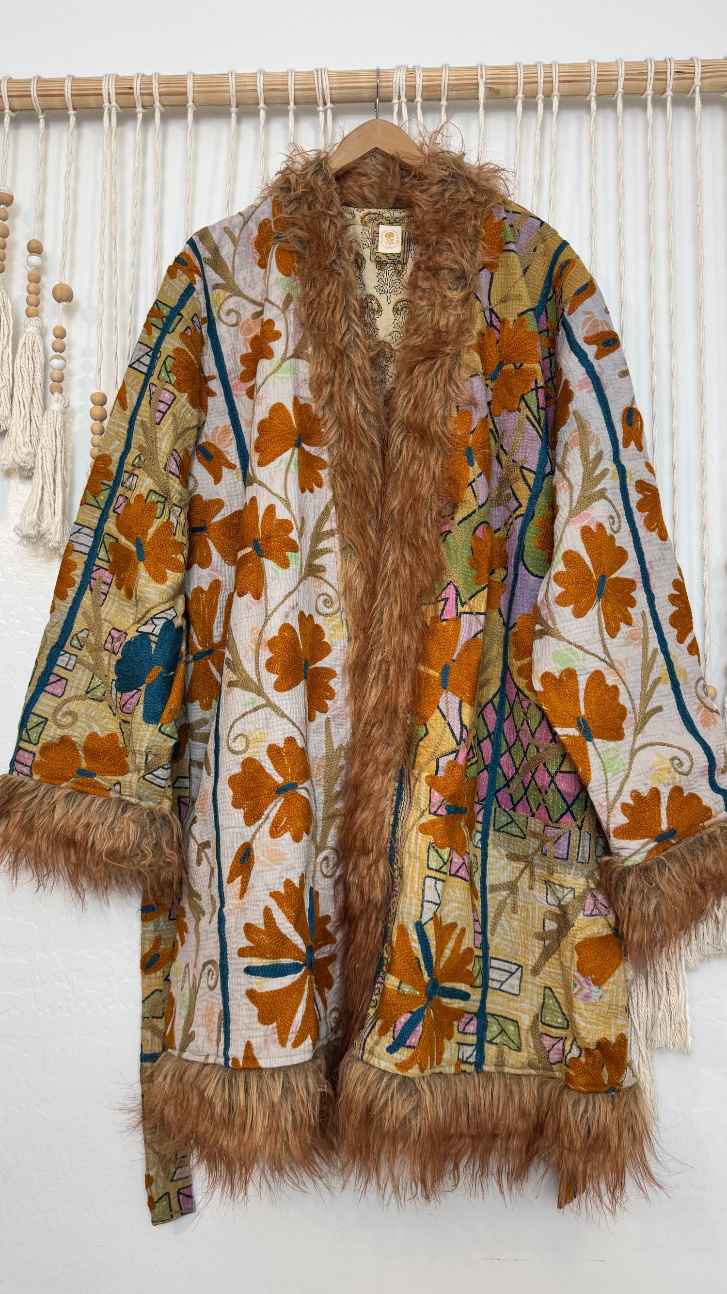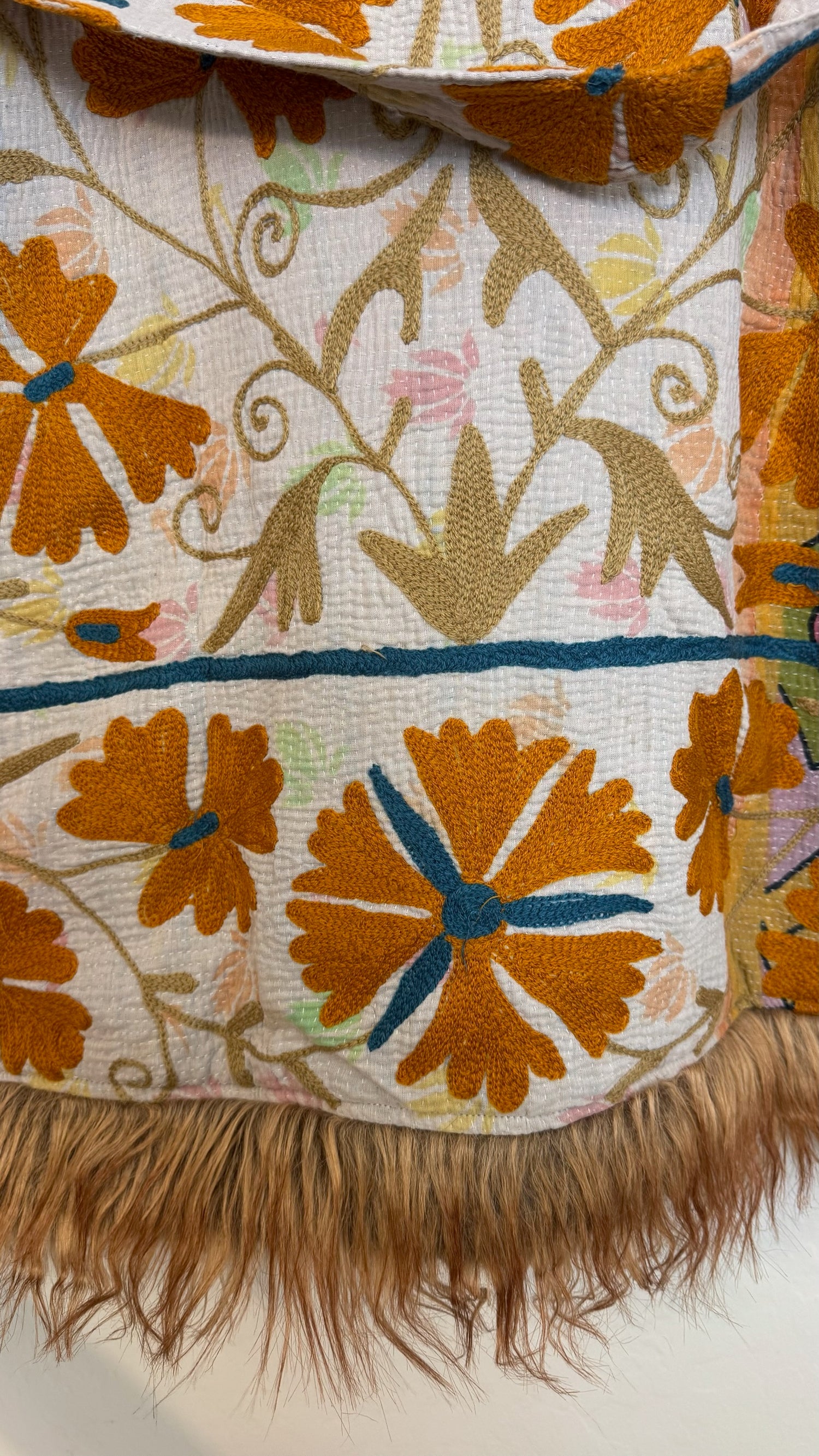 • 100% vintage cotton kantha saris, premium faux fur, and hand block printed cotton lining.