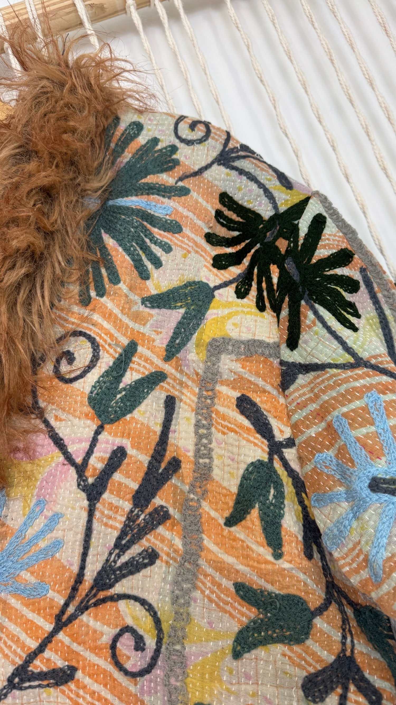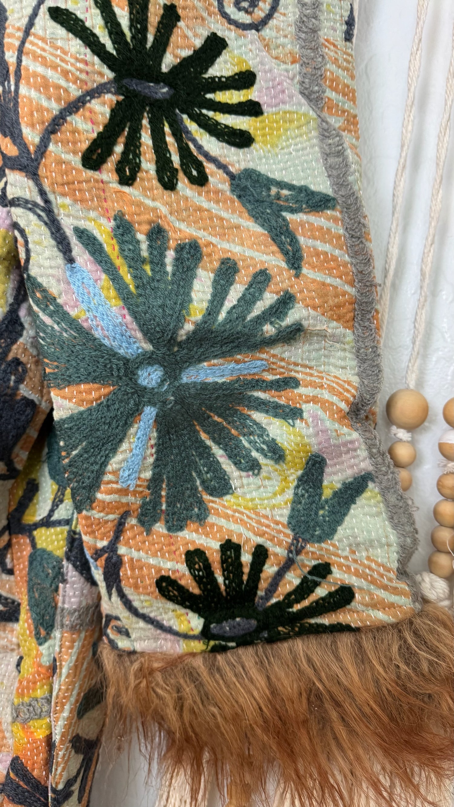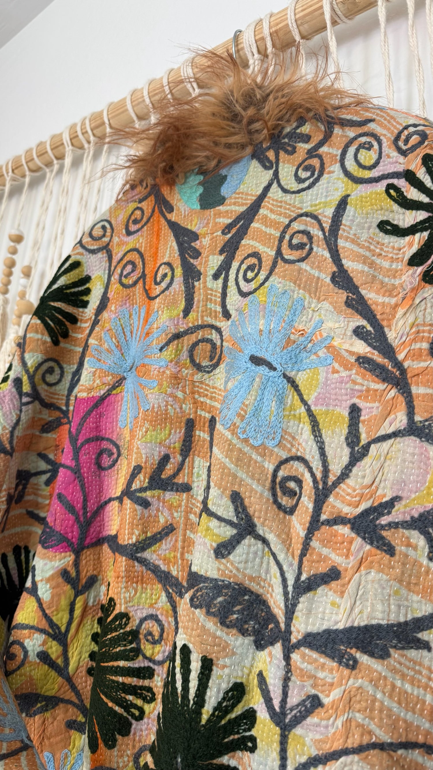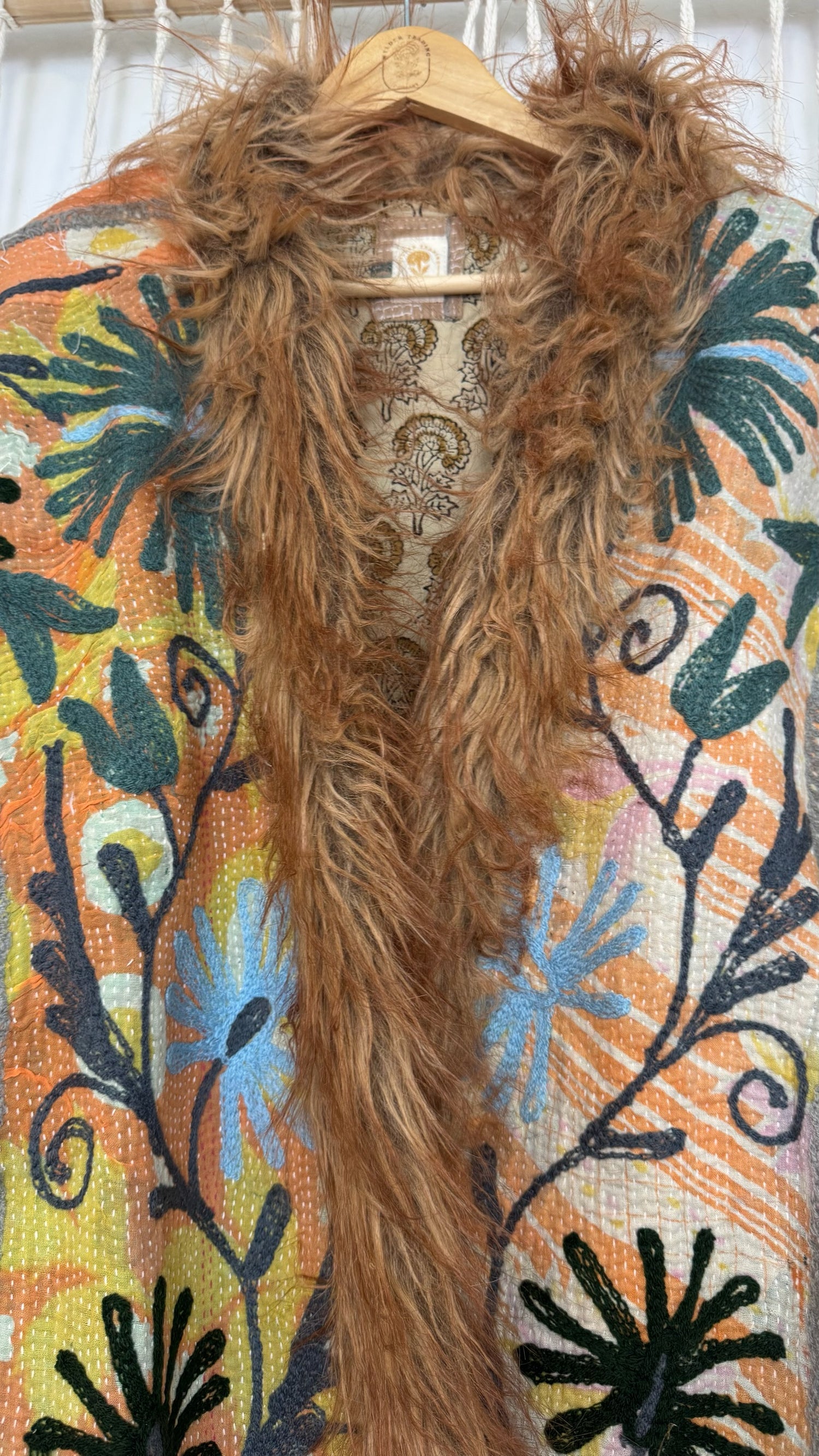 • 100% vintage cotton kantha saris, premium faux fur, and hand block printed cotton lining.