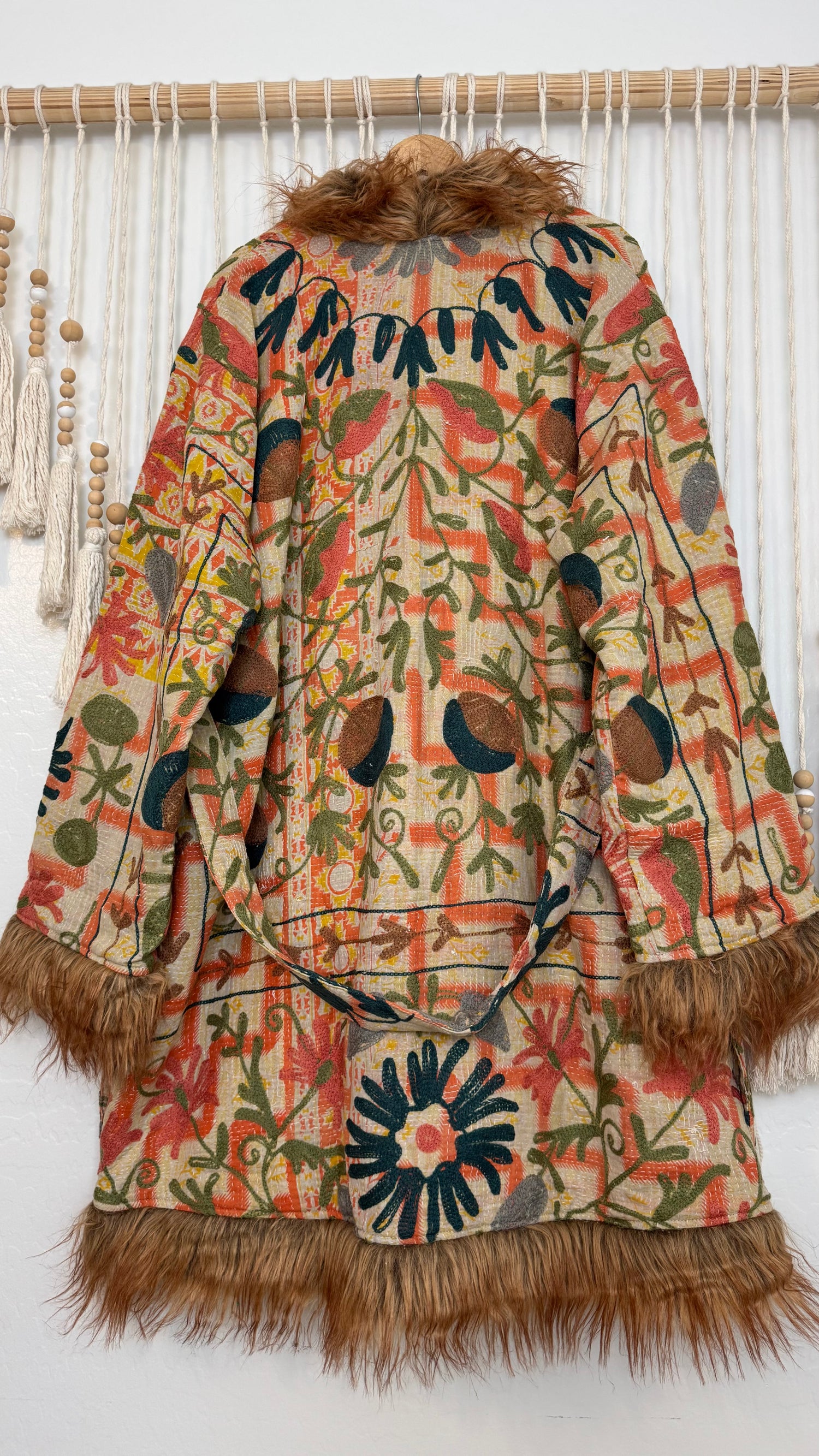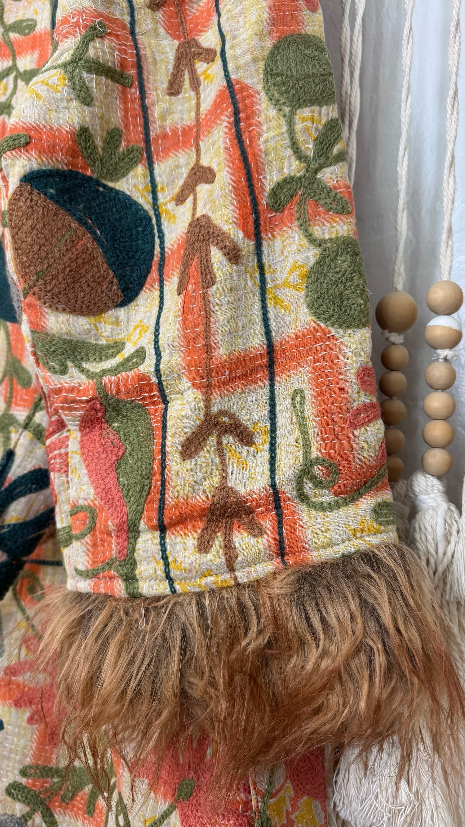 • 100% vintage cotton kantha saris, premium faux fur, and hand block printed cotton lining.