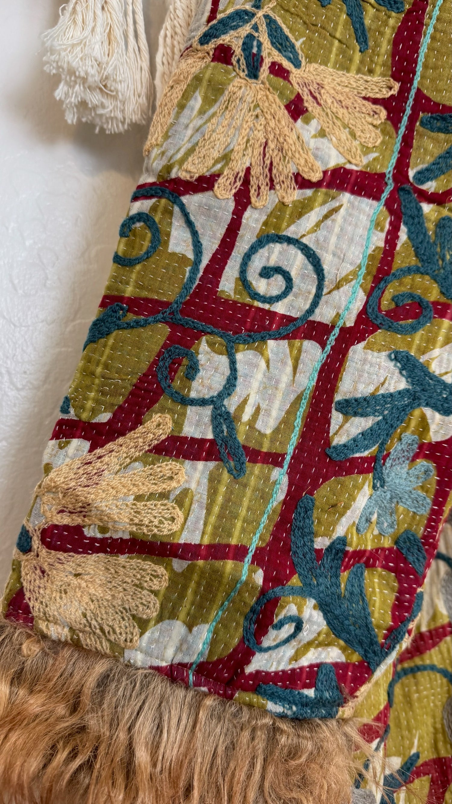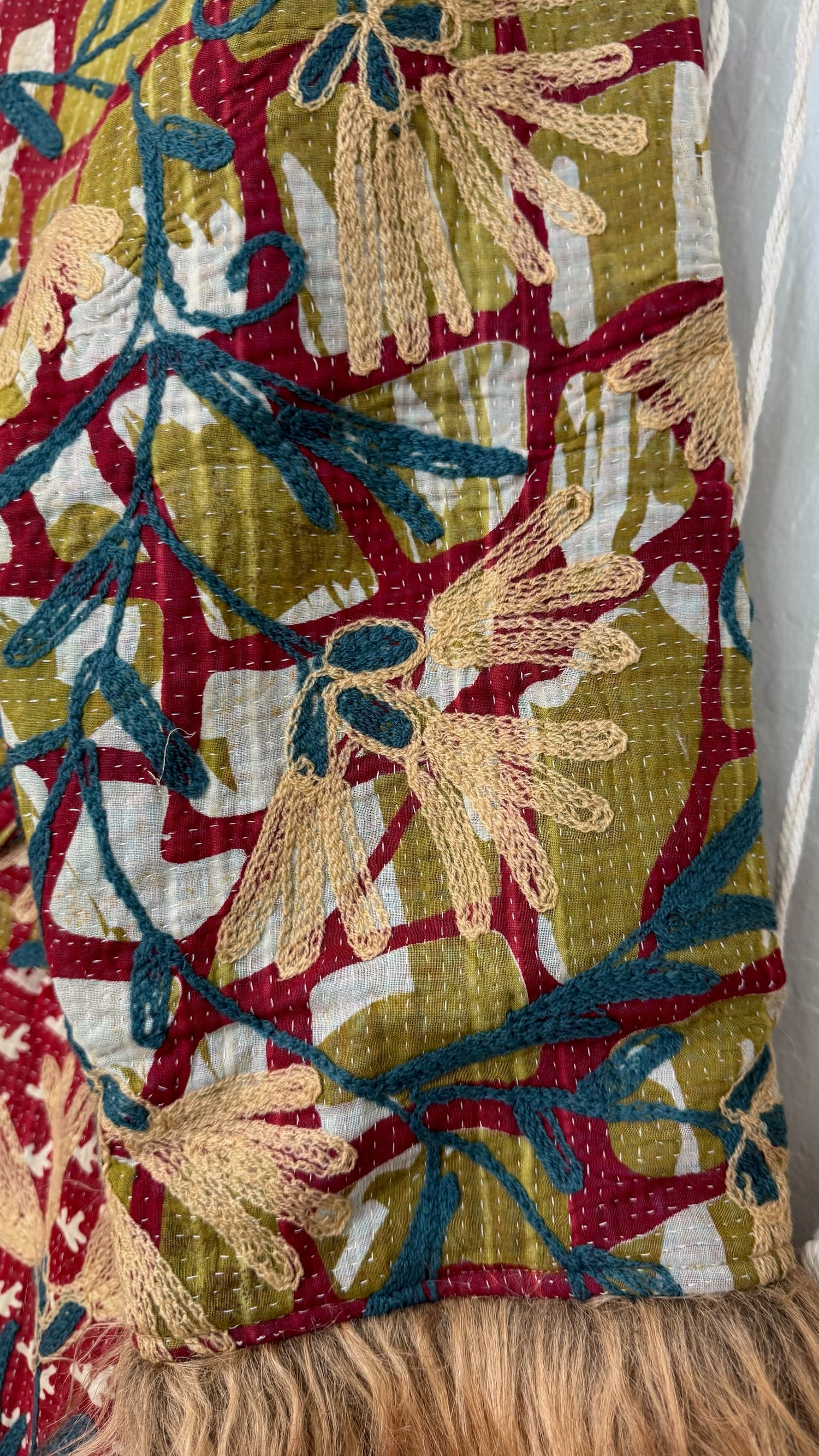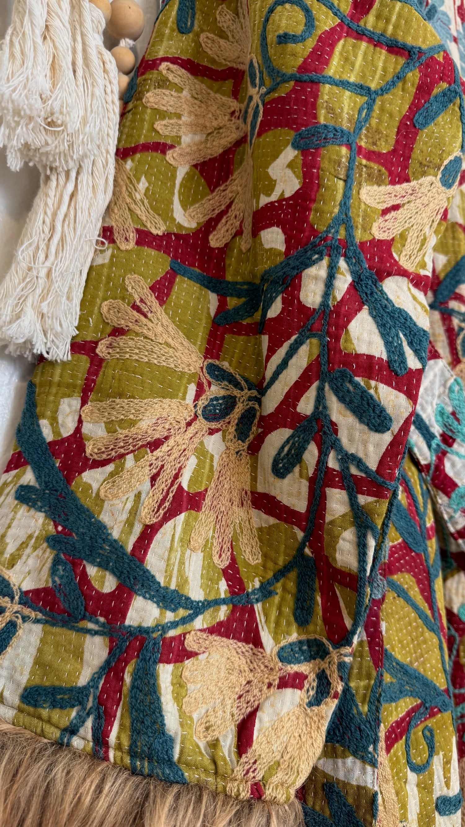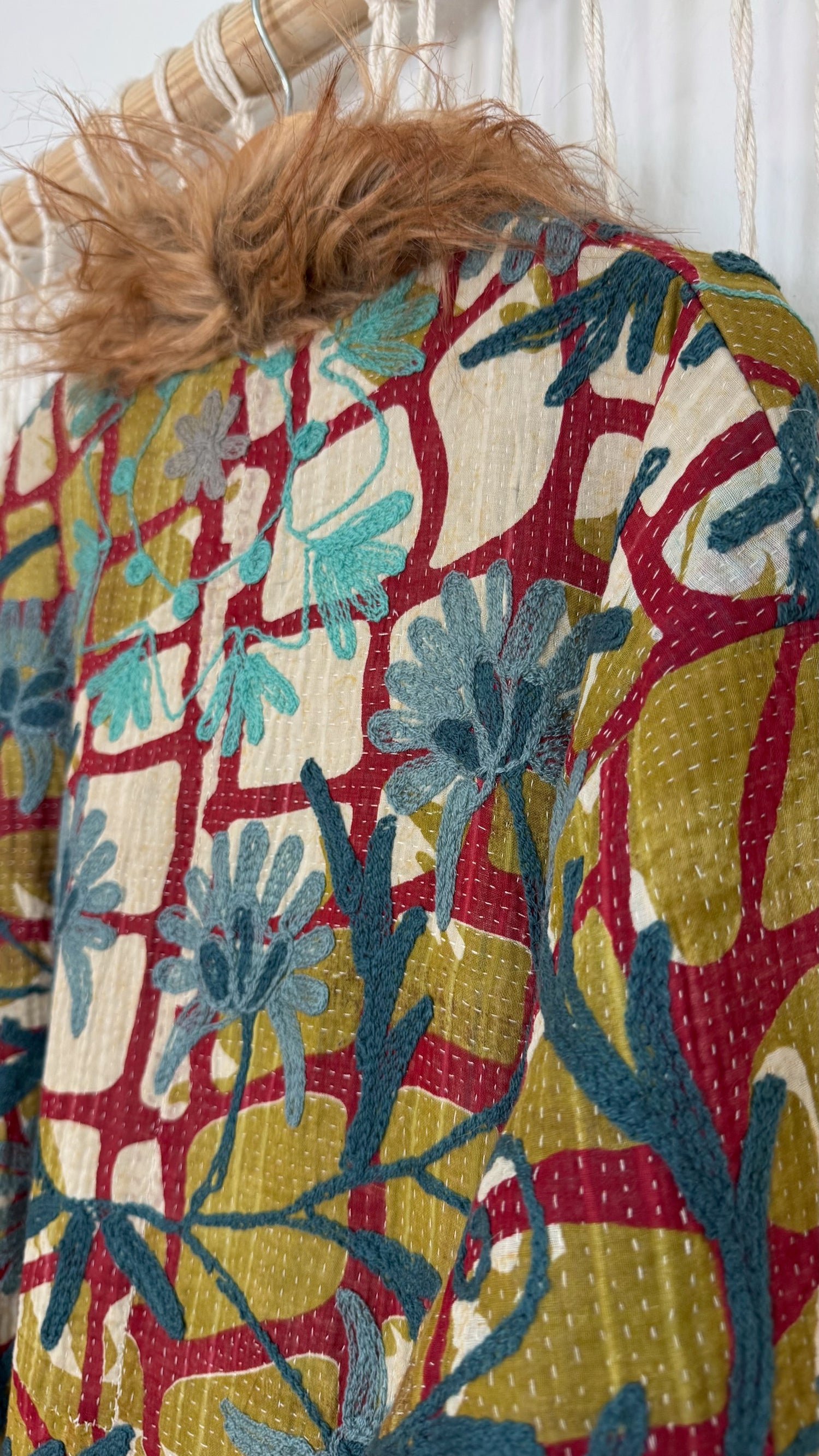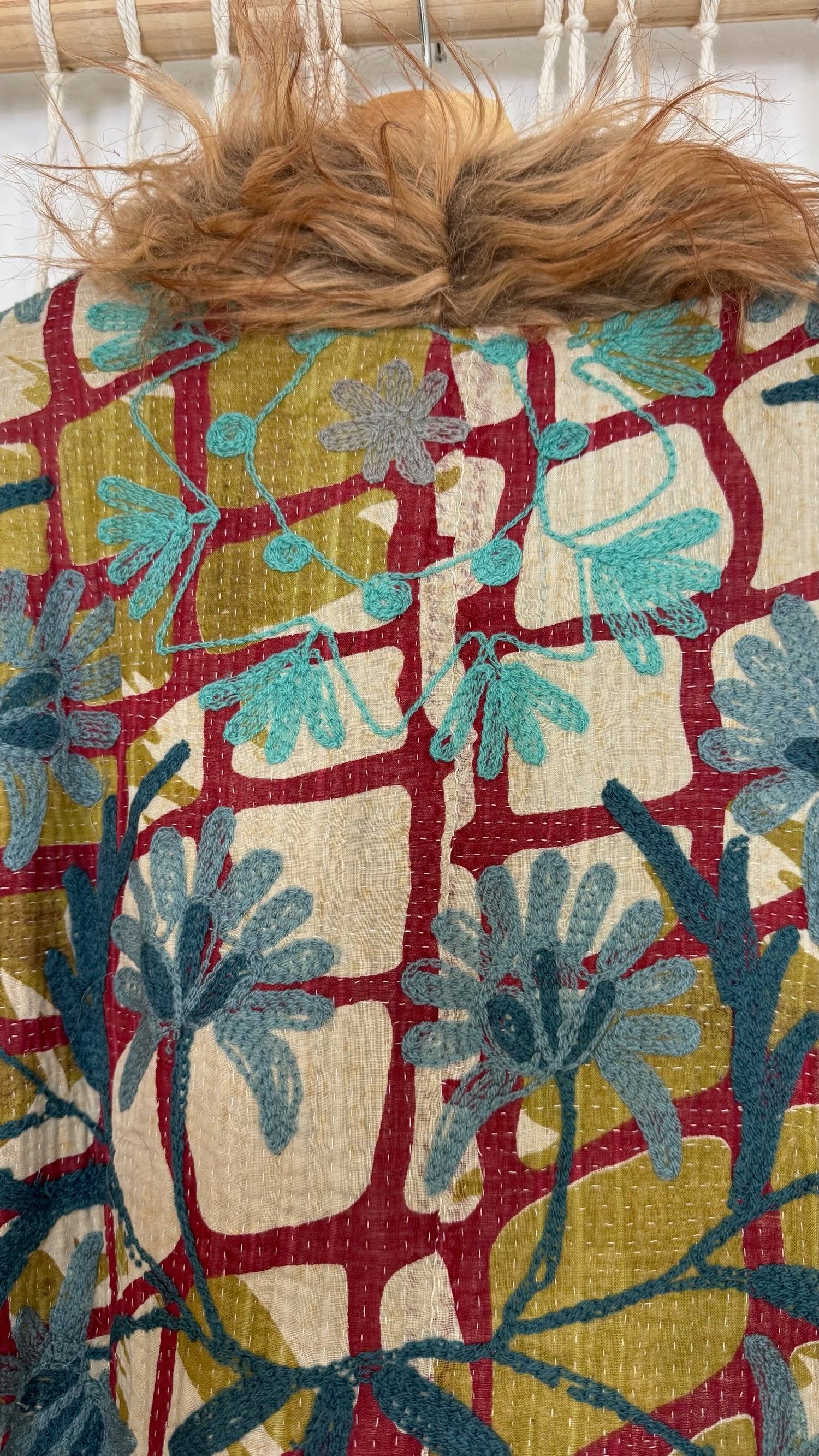 • 100% vintage cotton kantha saris, premium faux fur, and hand block printed cotton lining.