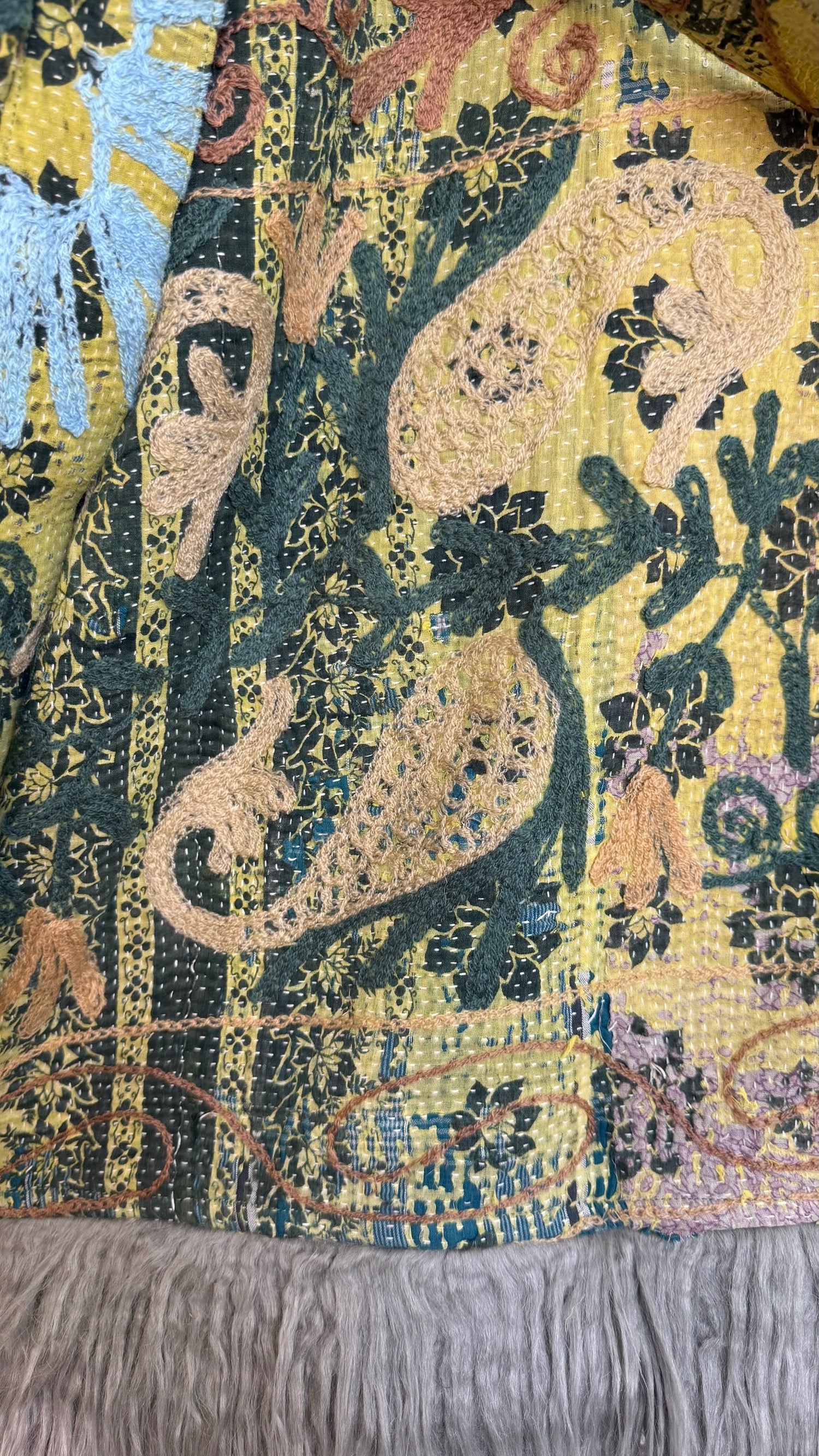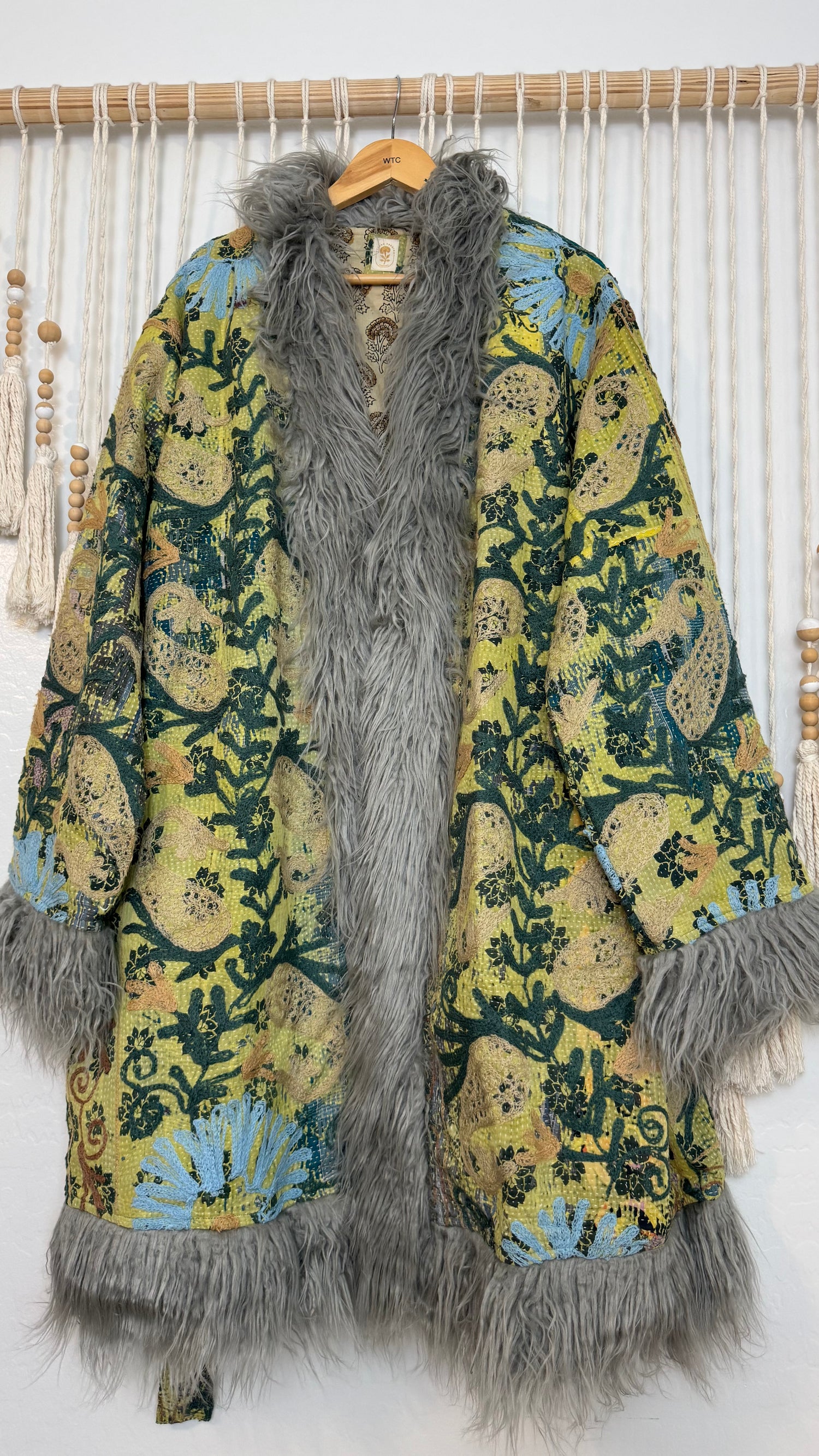 • 100% vintage cotton kantha saris, premium faux fur, and hand block printed cotton lining.