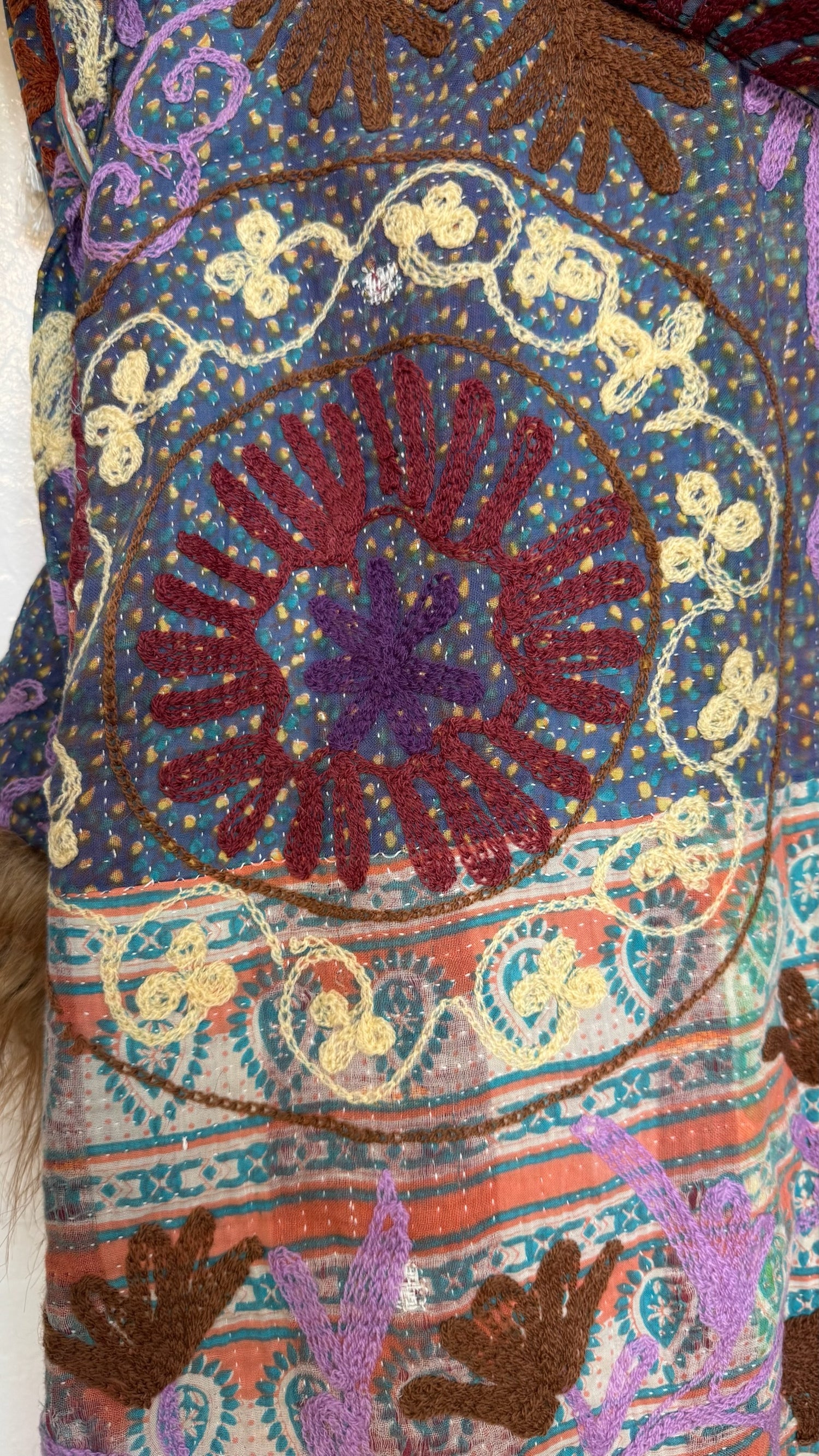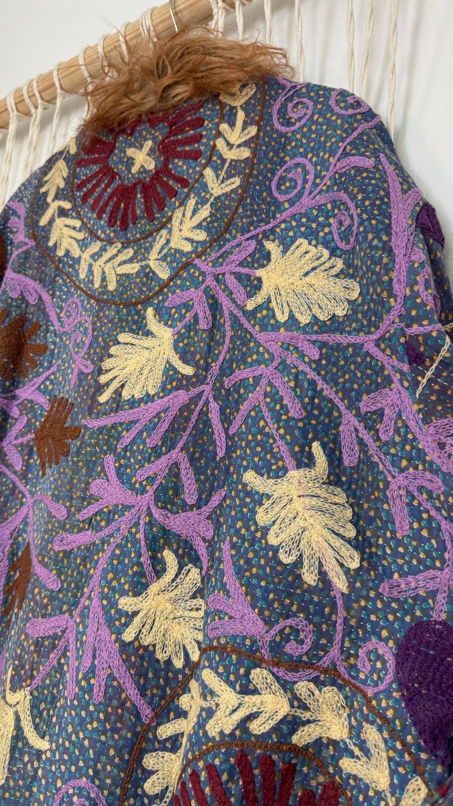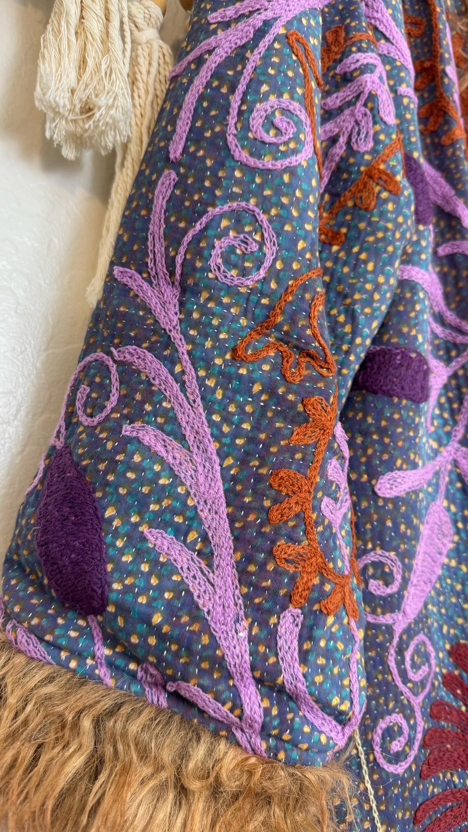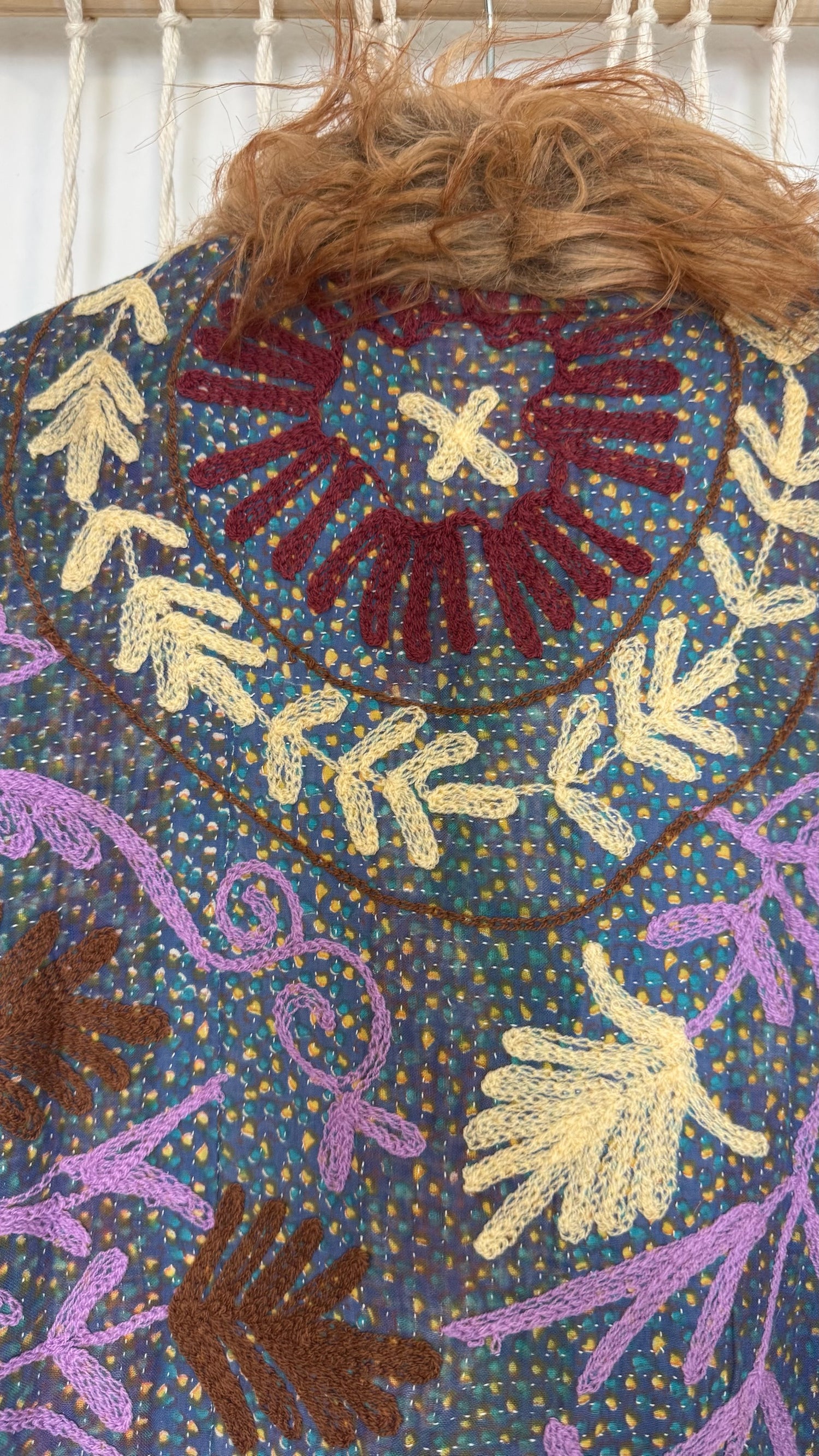 • 100% vintage cotton kantha saris, premium faux fur, and hand block printed cotton lining.