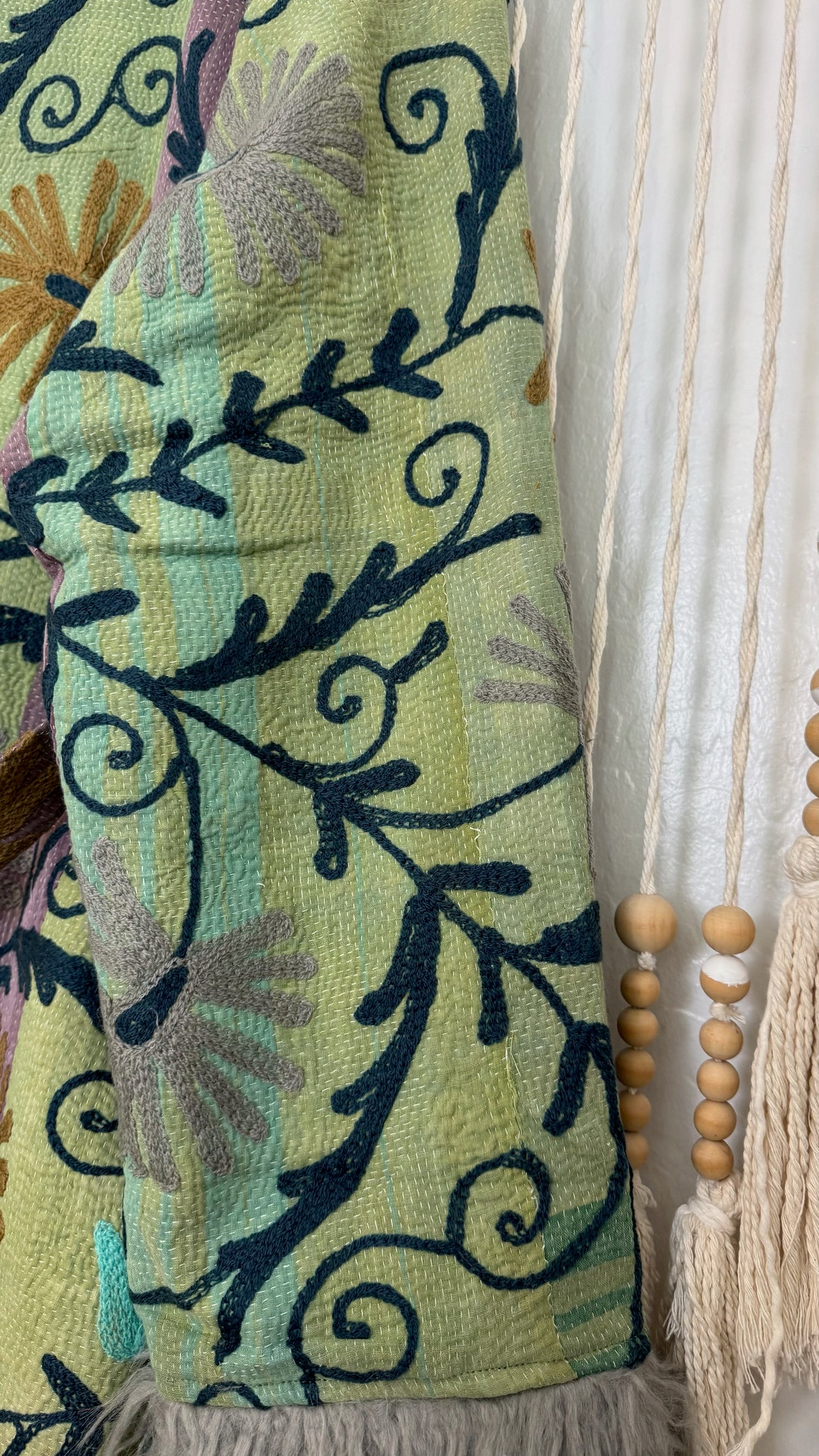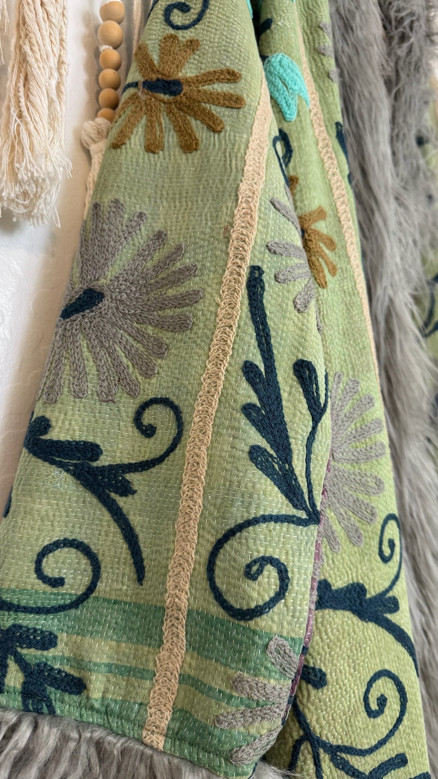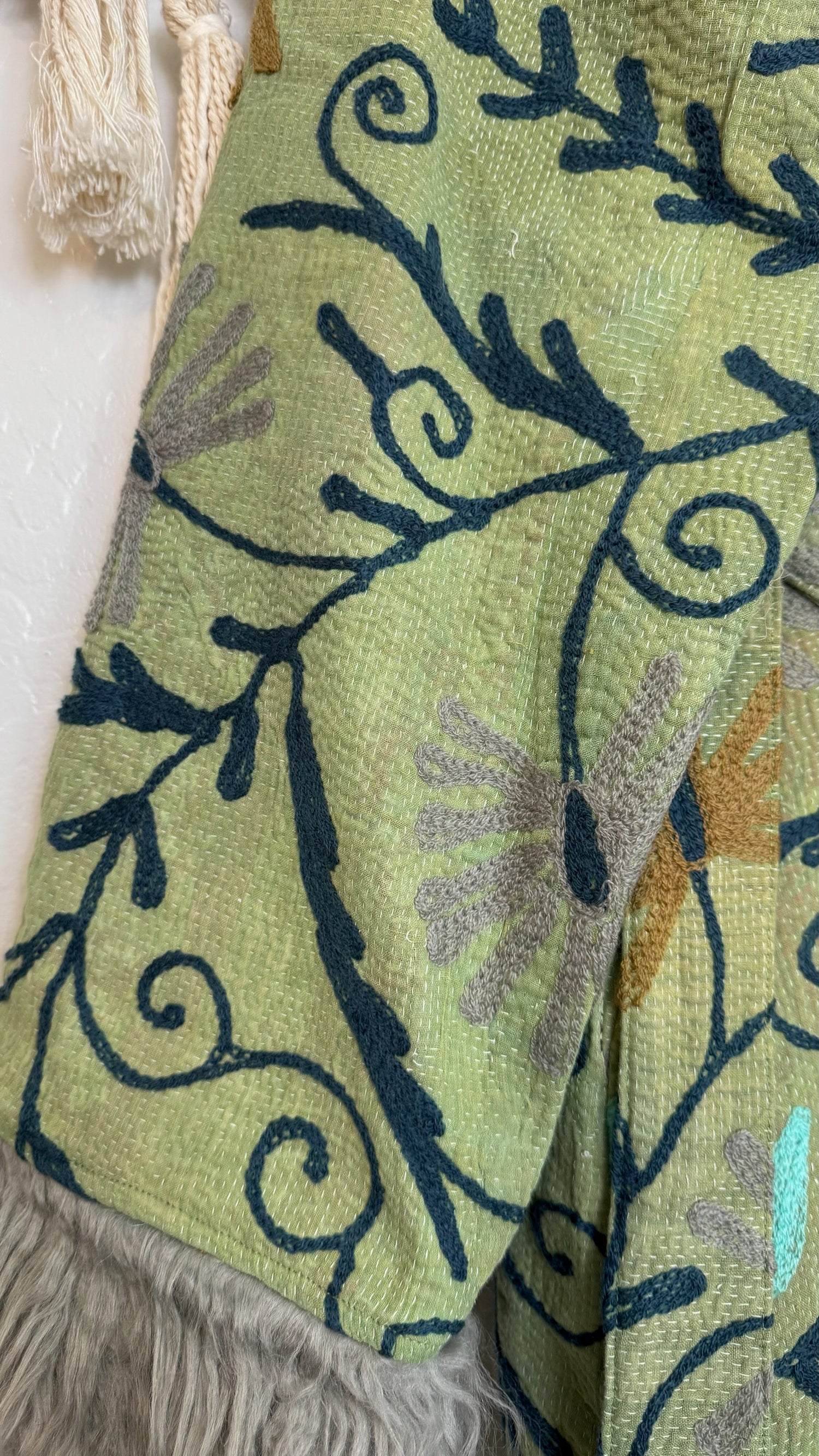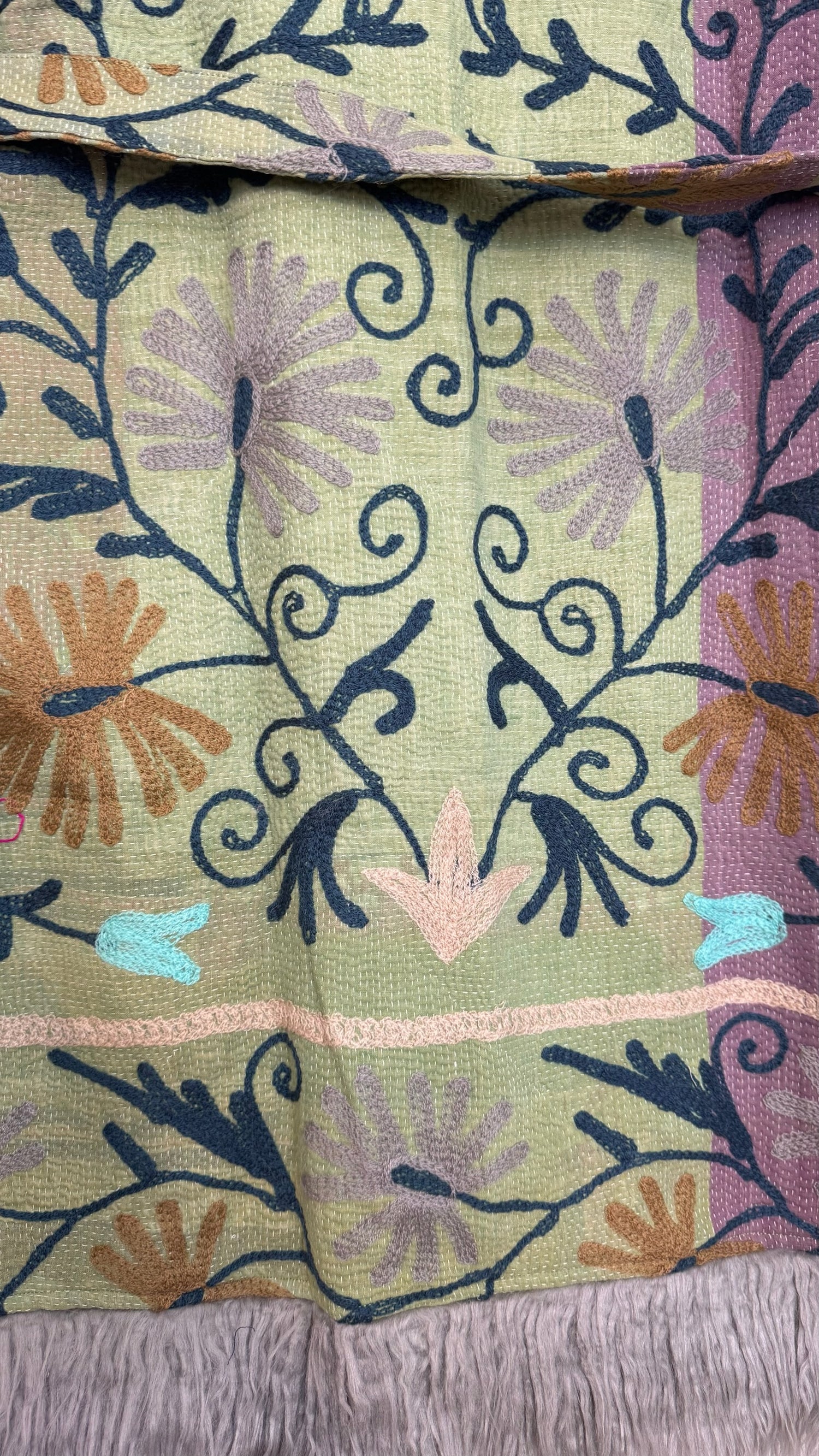 • 100% vintage cotton kantha saris, premium faux fur, and hand block printed cotton lining.