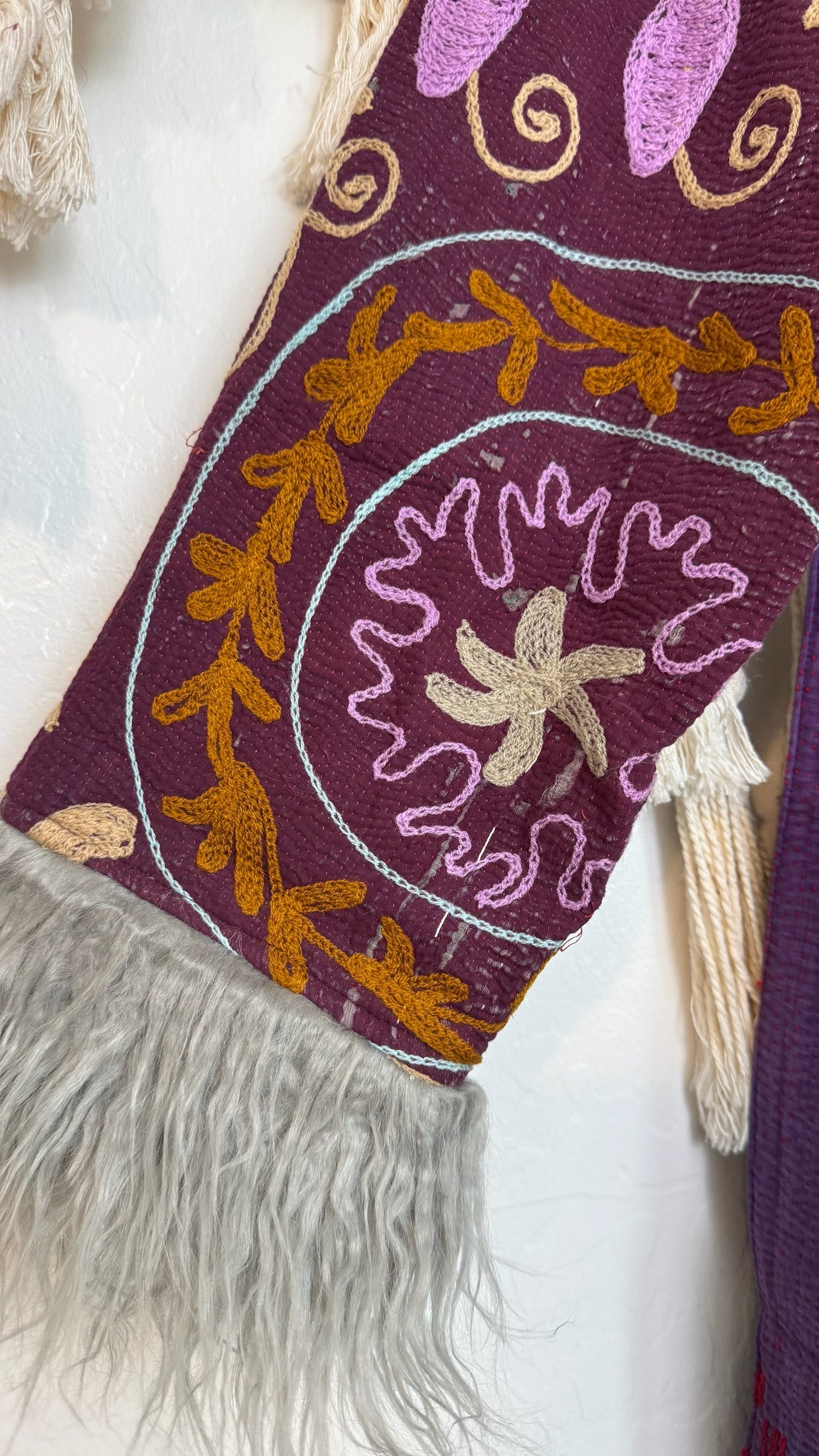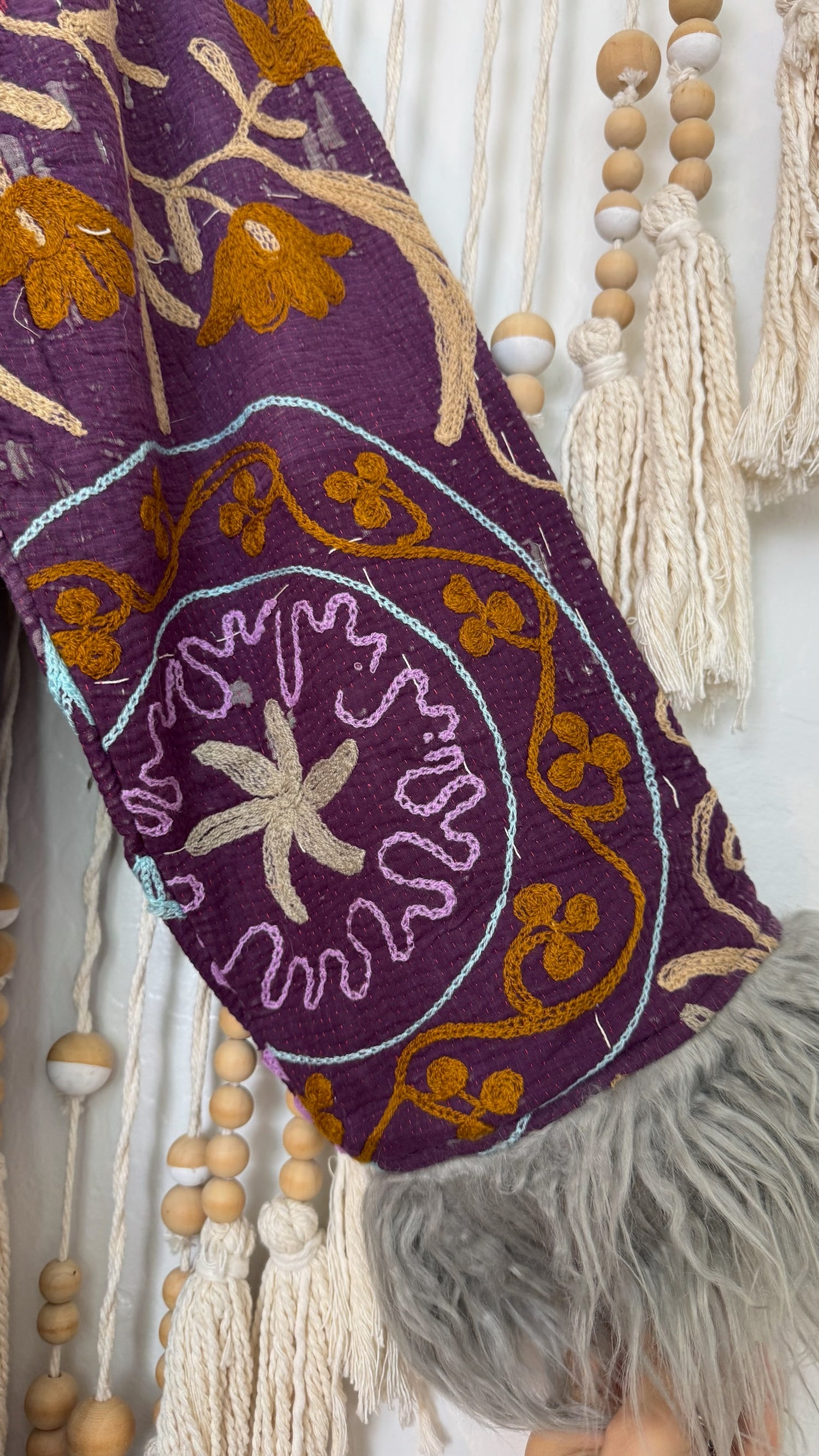 • 100% vintage cotton kantha saris, premium faux fur, and hand block printed cotton lining.