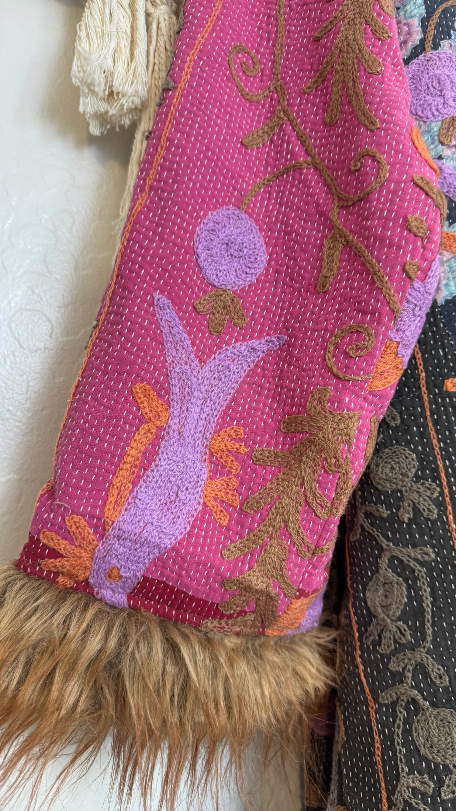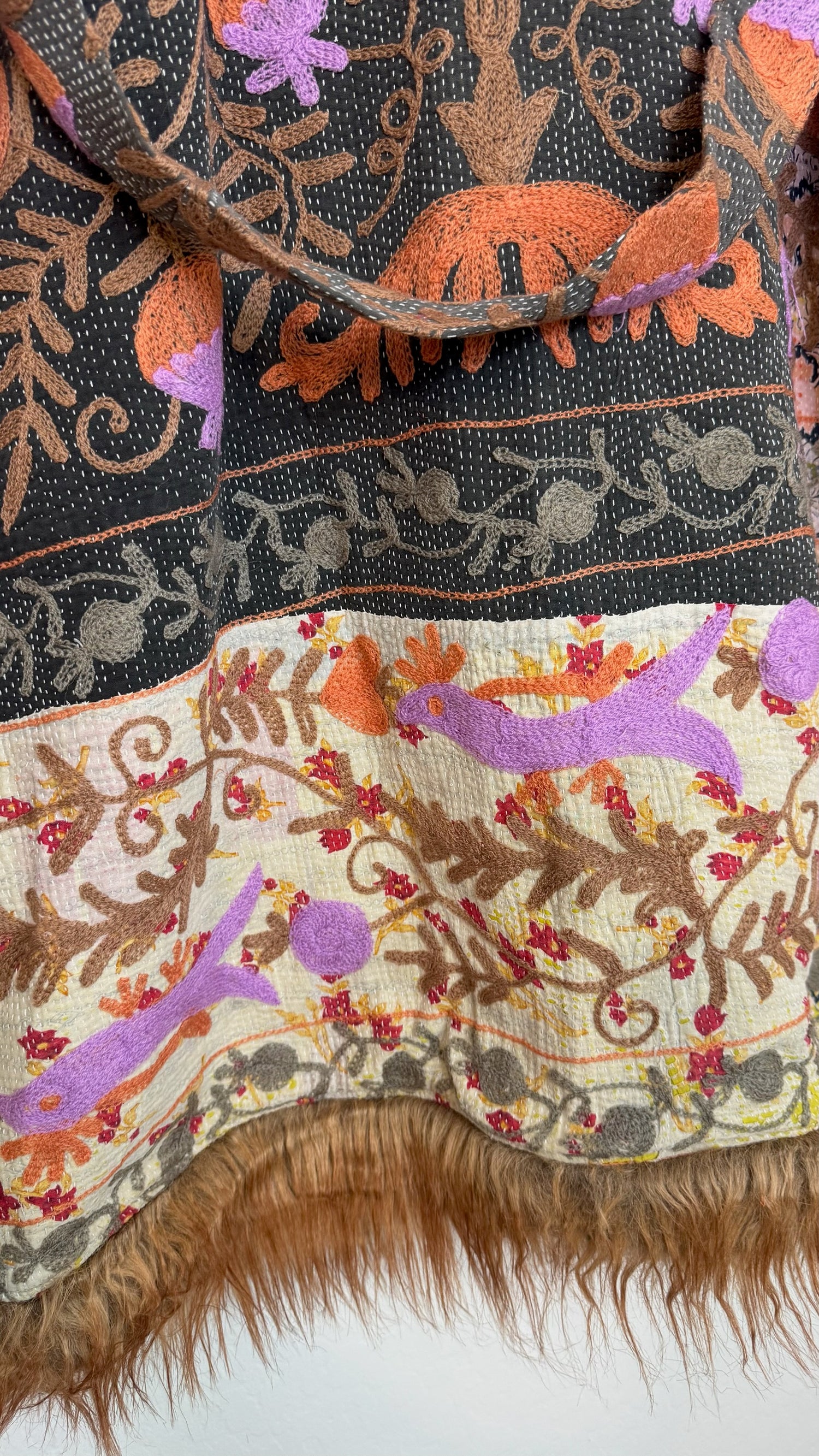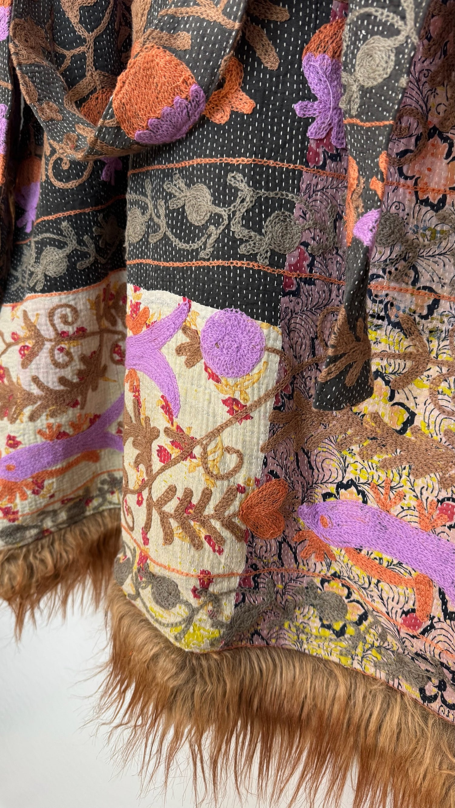 • 100% vintage cotton kantha saris, premium faux fur, and hand block printed cotton lining.