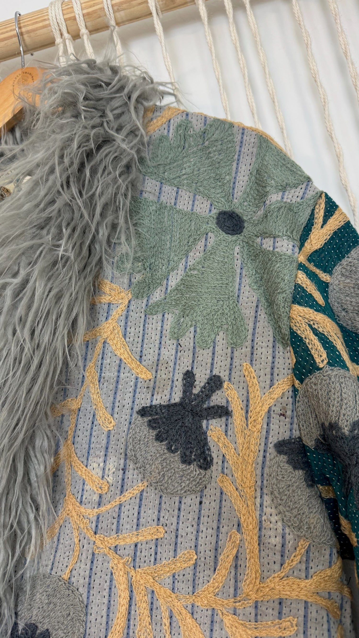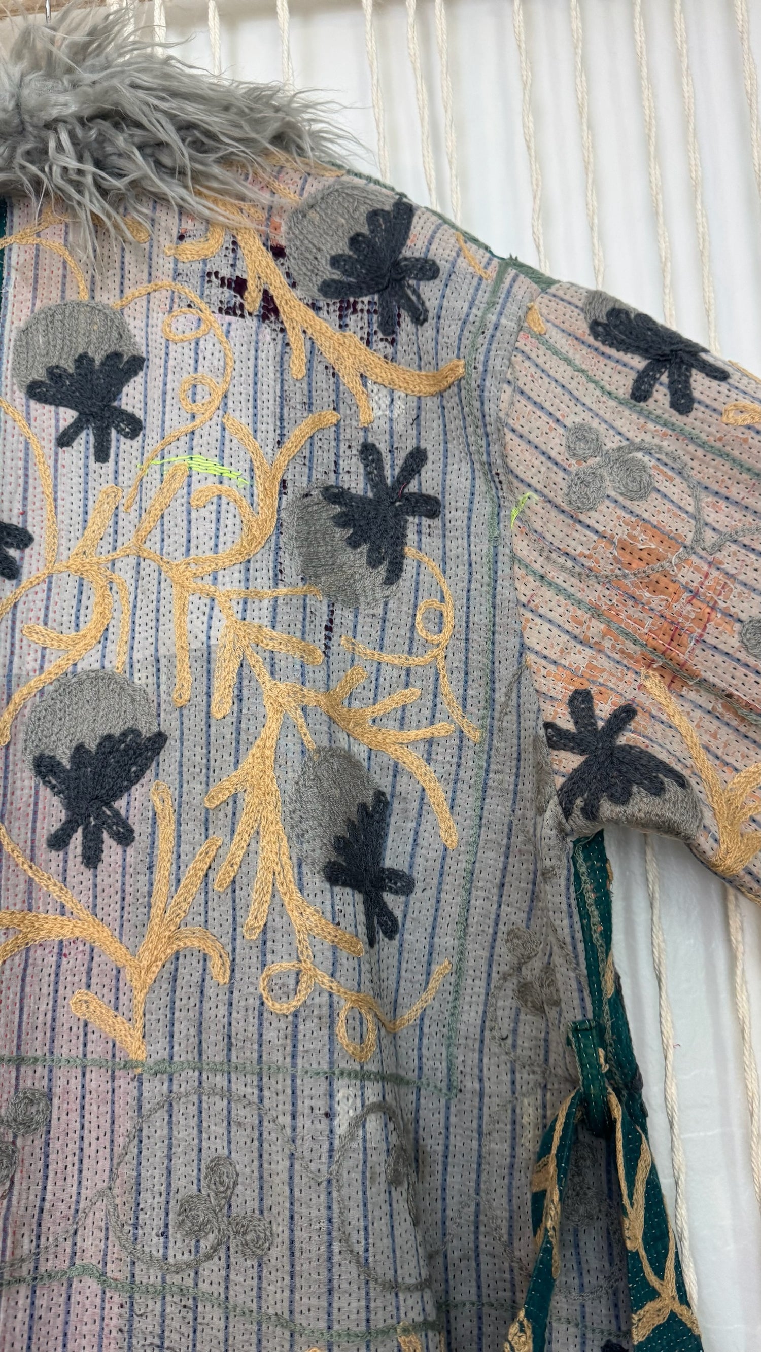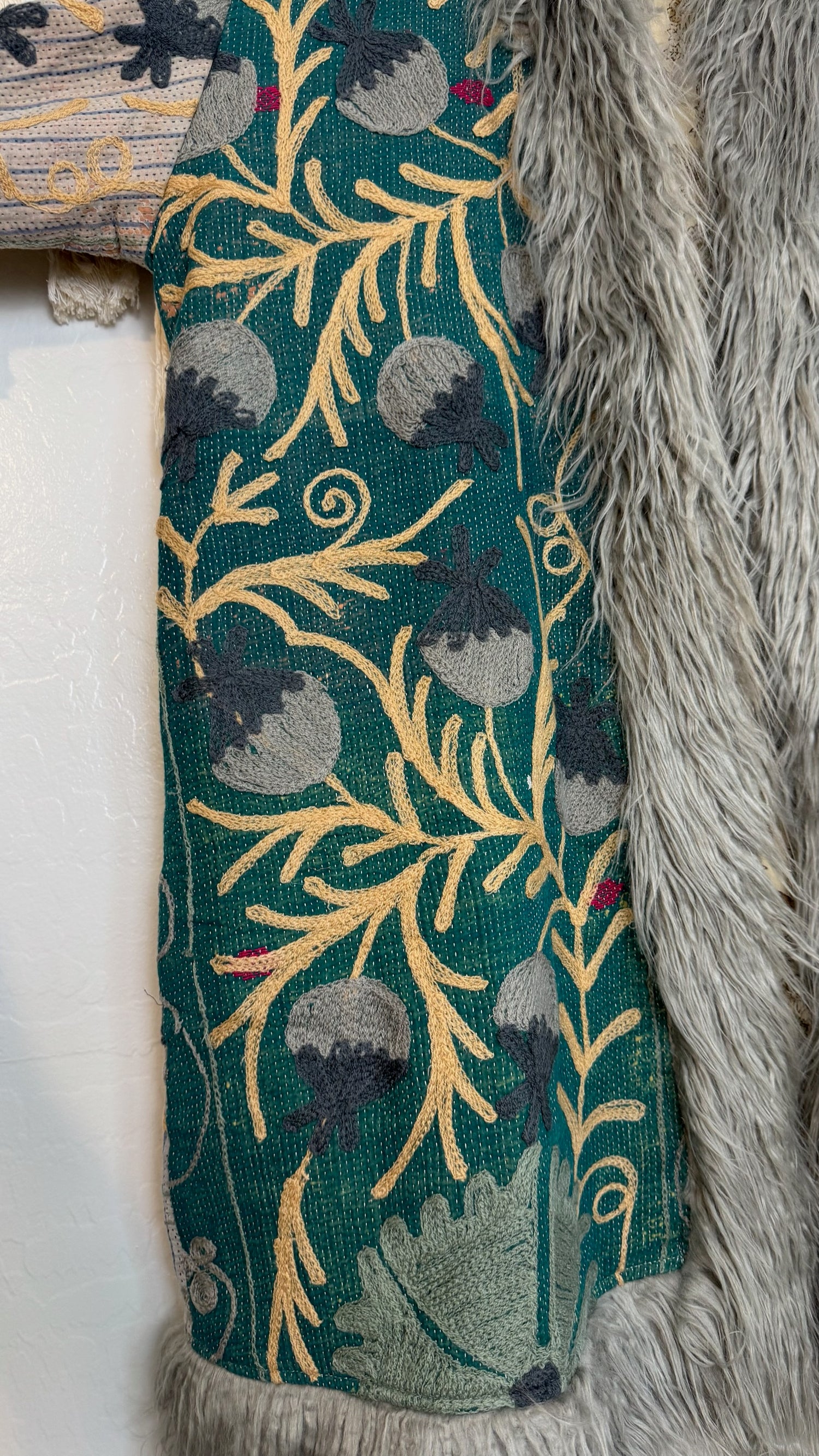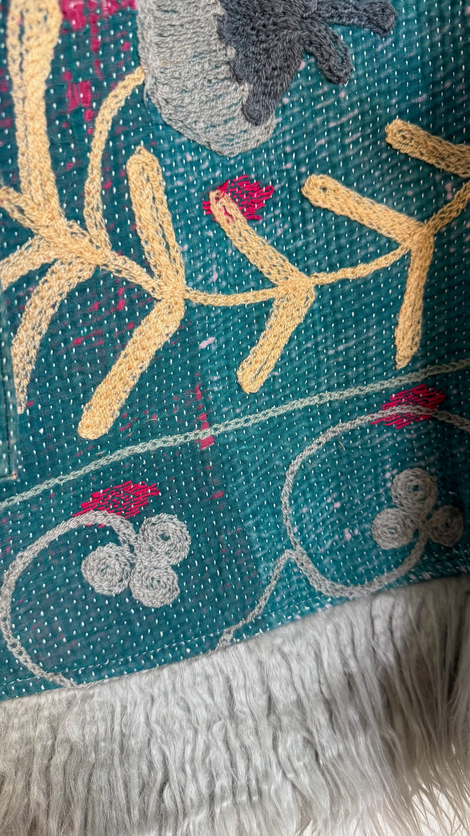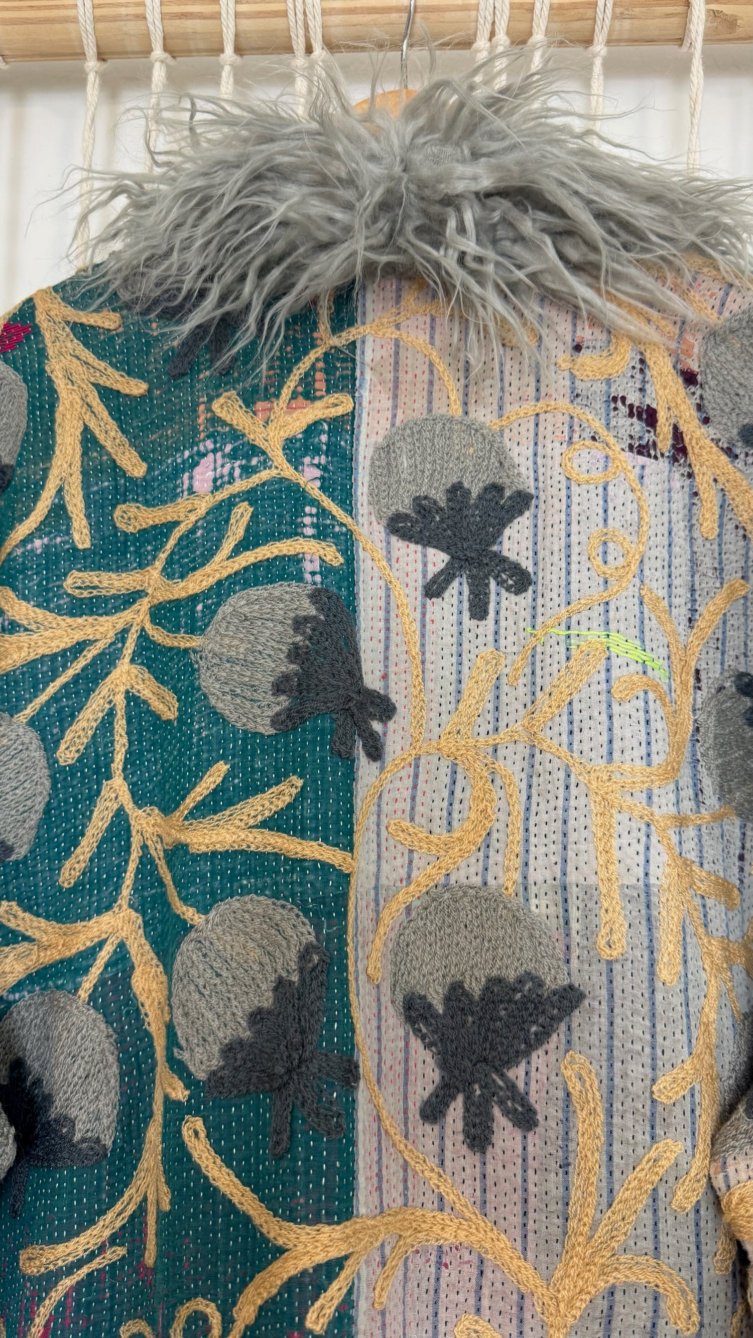 • 100% vintage cotton kantha saris, premium faux fur, and hand block printed cotton lining.