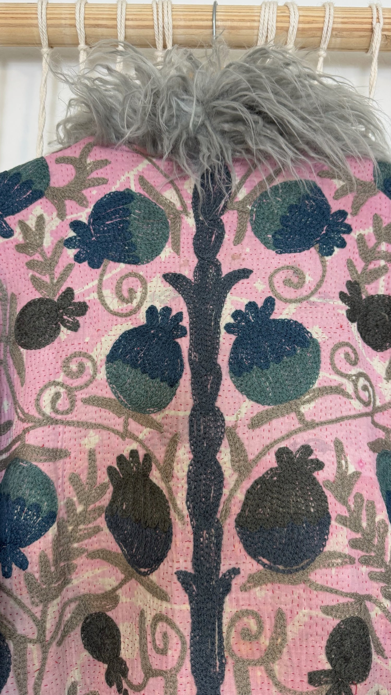 • 100% vintage cotton kantha saris, premium faux fur, and hand block printed cotton lining.