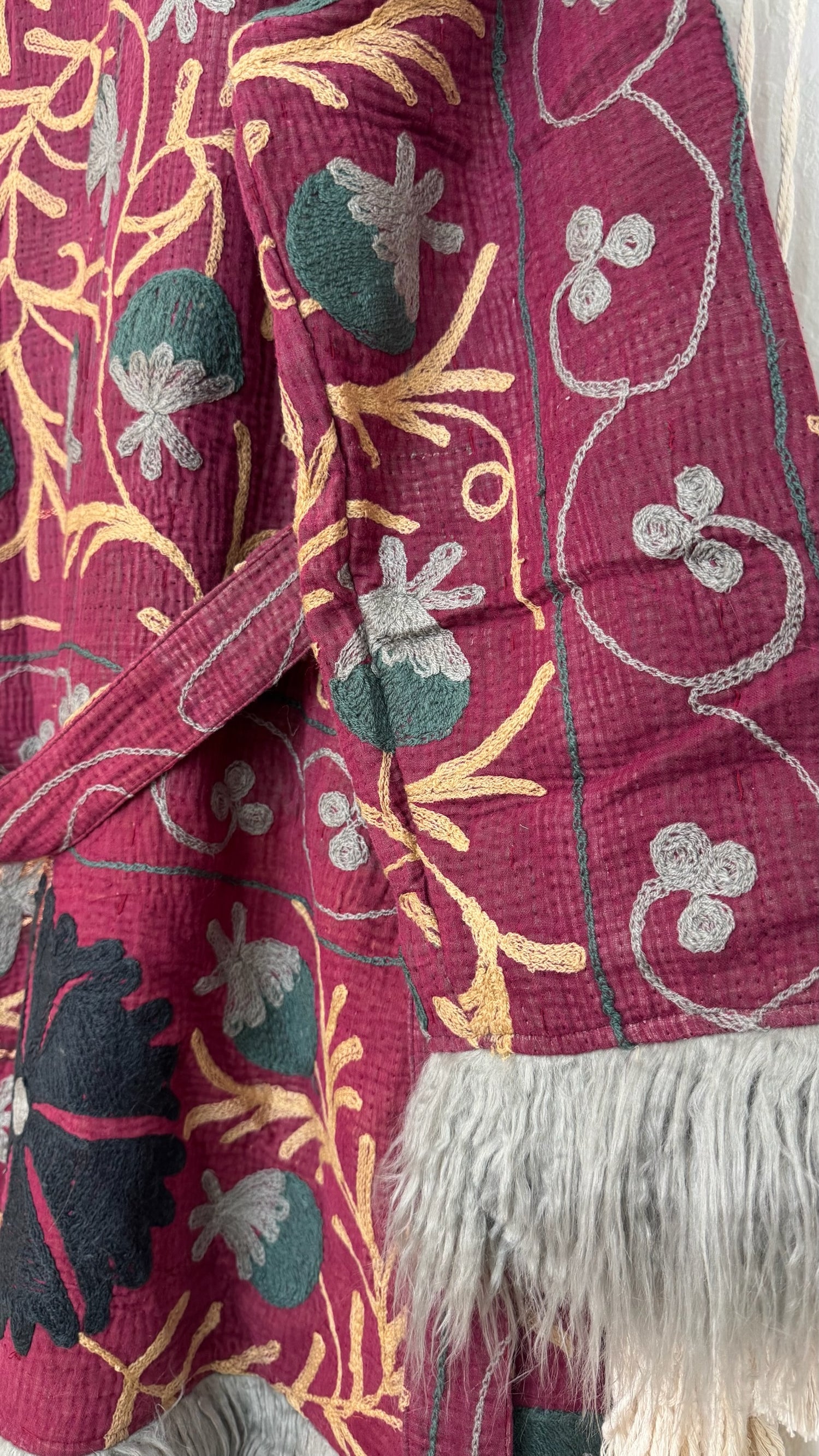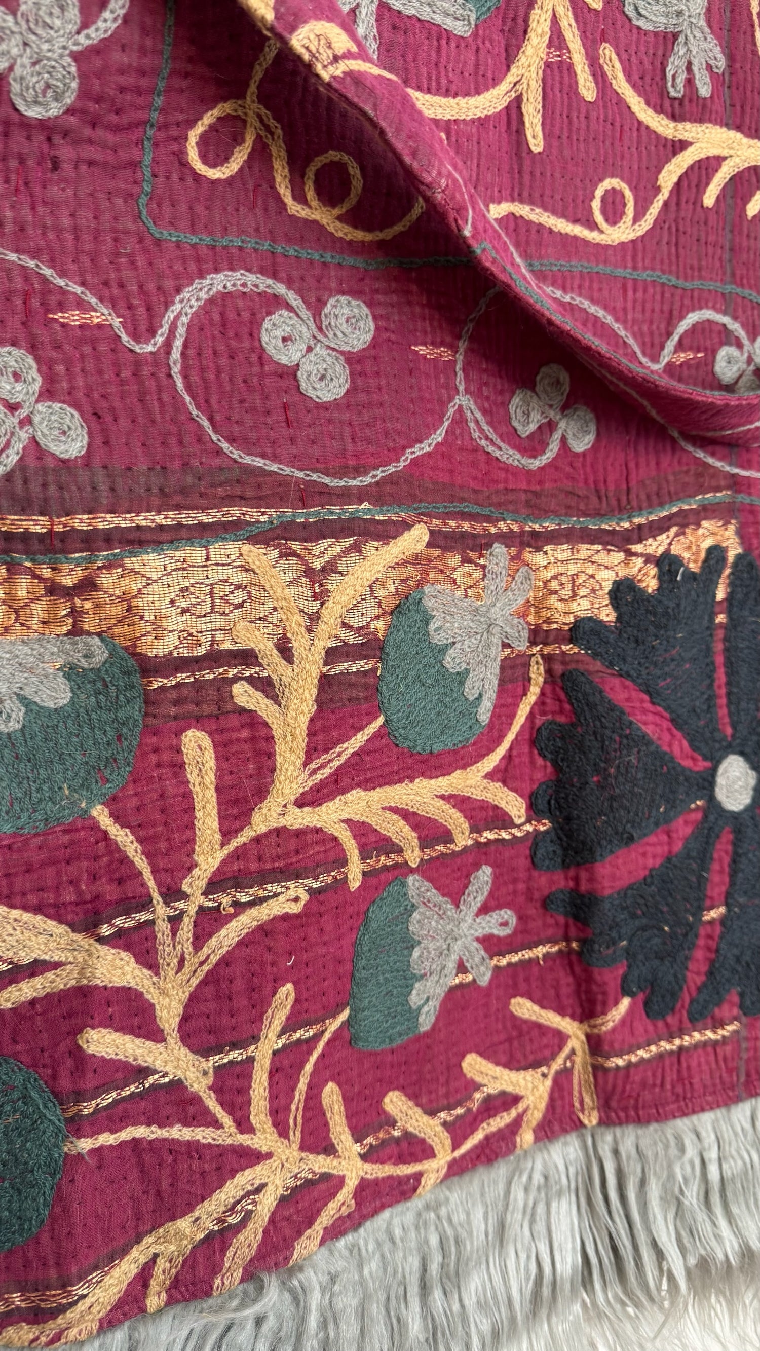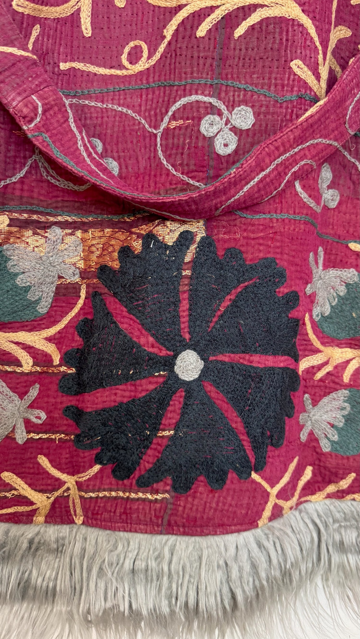 • 100% vintage cotton kantha saris, premium faux fur, and hand block printed cotton lining.