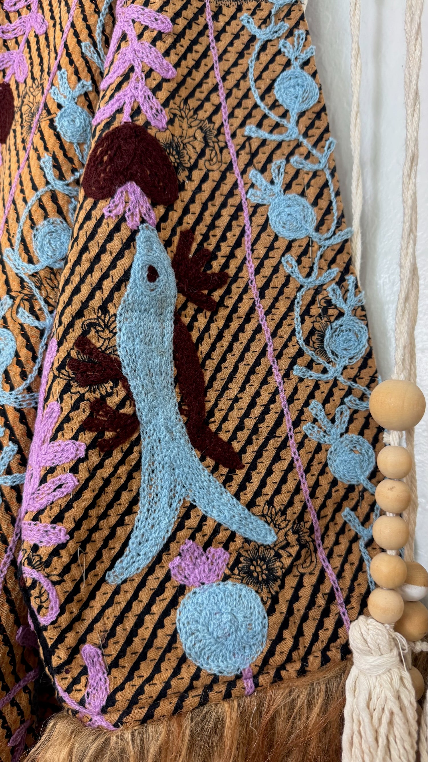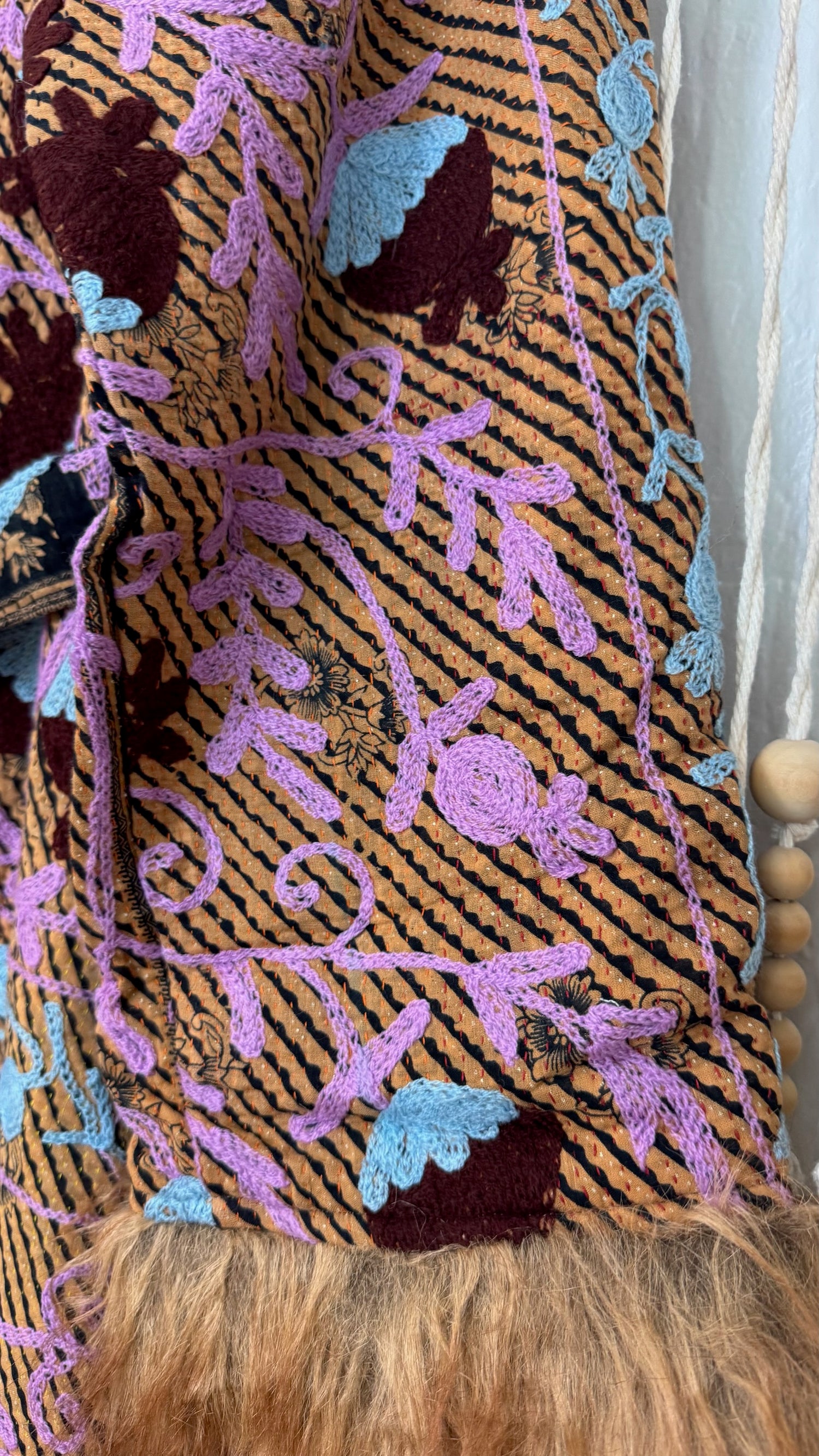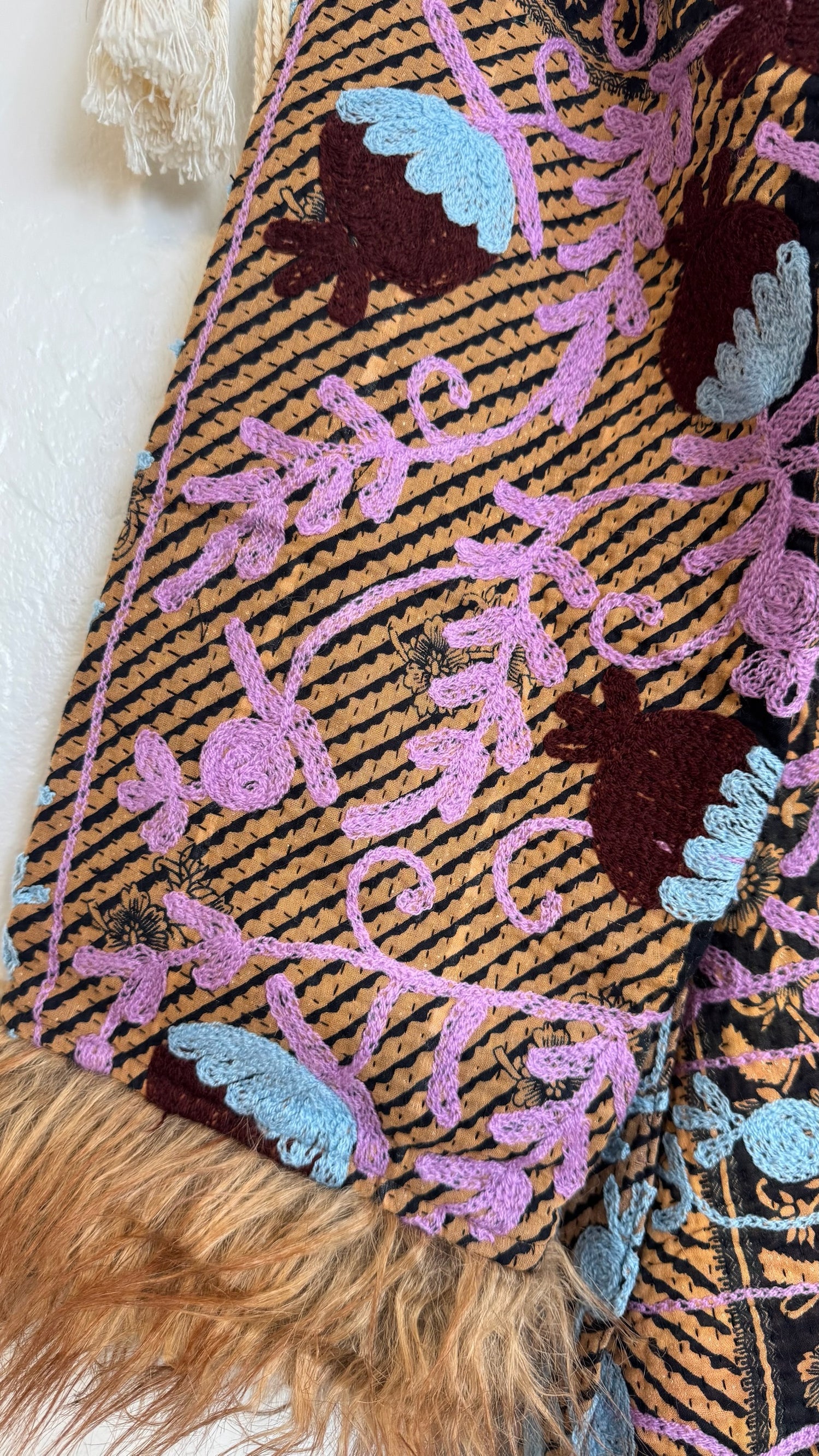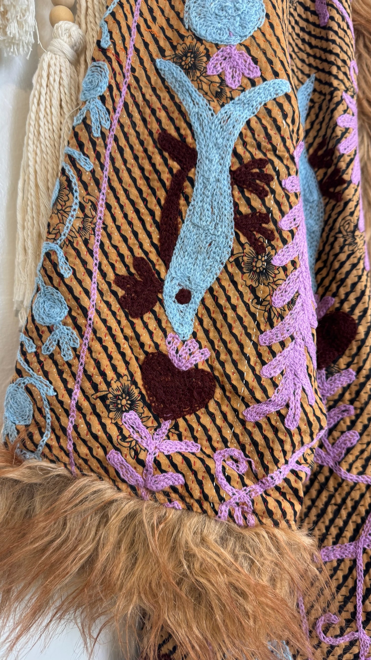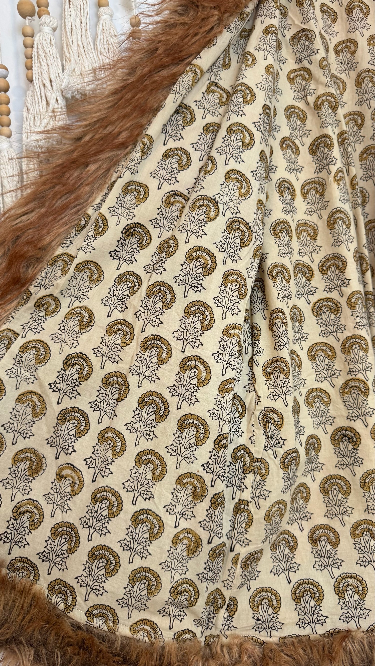 • 100% vintage cotton kantha saris, premium faux fur, and hand block printed cotton lining.