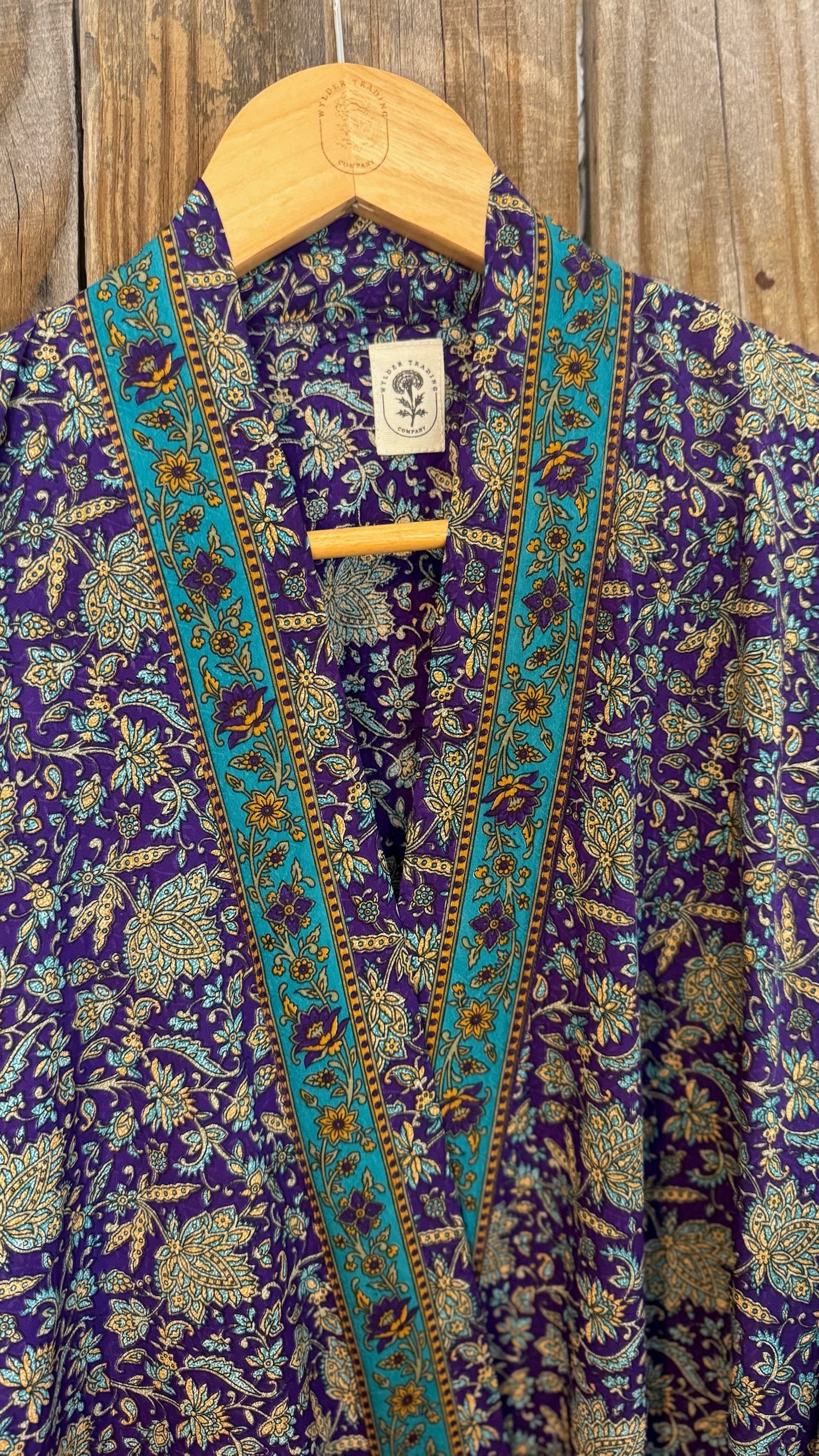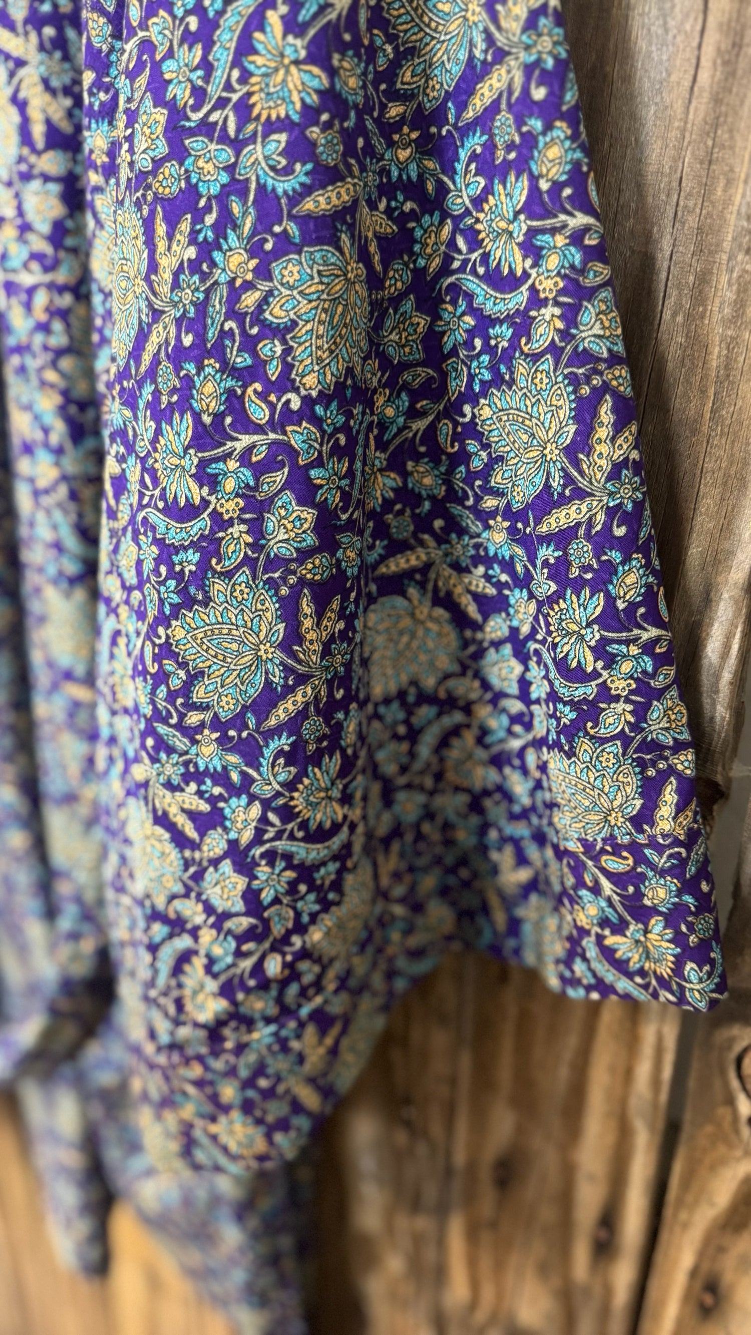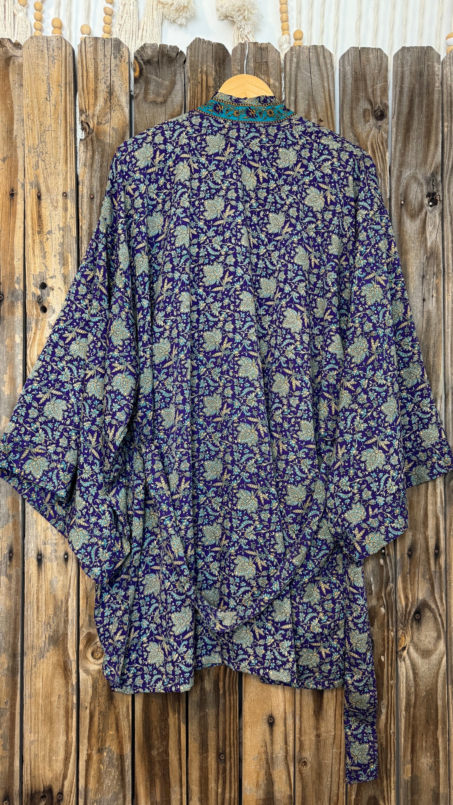 Please refer to our Silk Guide for descriptions onย each type of silk texture. Texture of silk will vary across each garment, as this style of kimono is handmade from 100% recycled sari silk material.ย