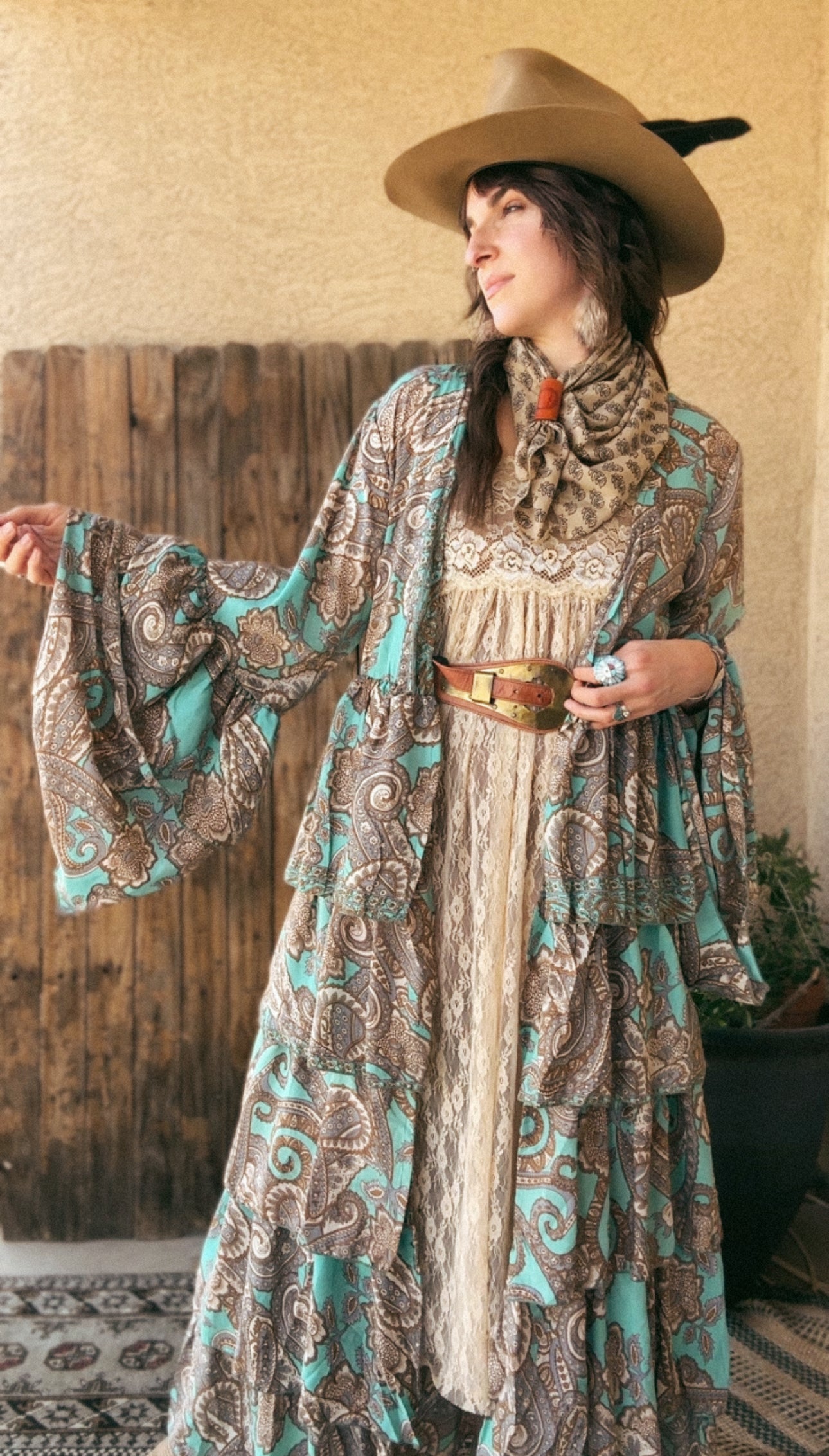 Please note: All sales are final. This style is made with historic vintage fabric and handcrafted from across the world. The silk material has been upcycled to prevent landfill waste. As such, wear and signs of prior use will be present. This historic fabric commonly has areas of imperfection, discoloration, stray threads, staining and it is common for holes and fabric thinning to be present throughout the first layer of fabric. This style of distressed fabric is intentional, celebrated for its age and historical wear, and these characteristics do not indicate a flaw or impact the overall function of the garment.