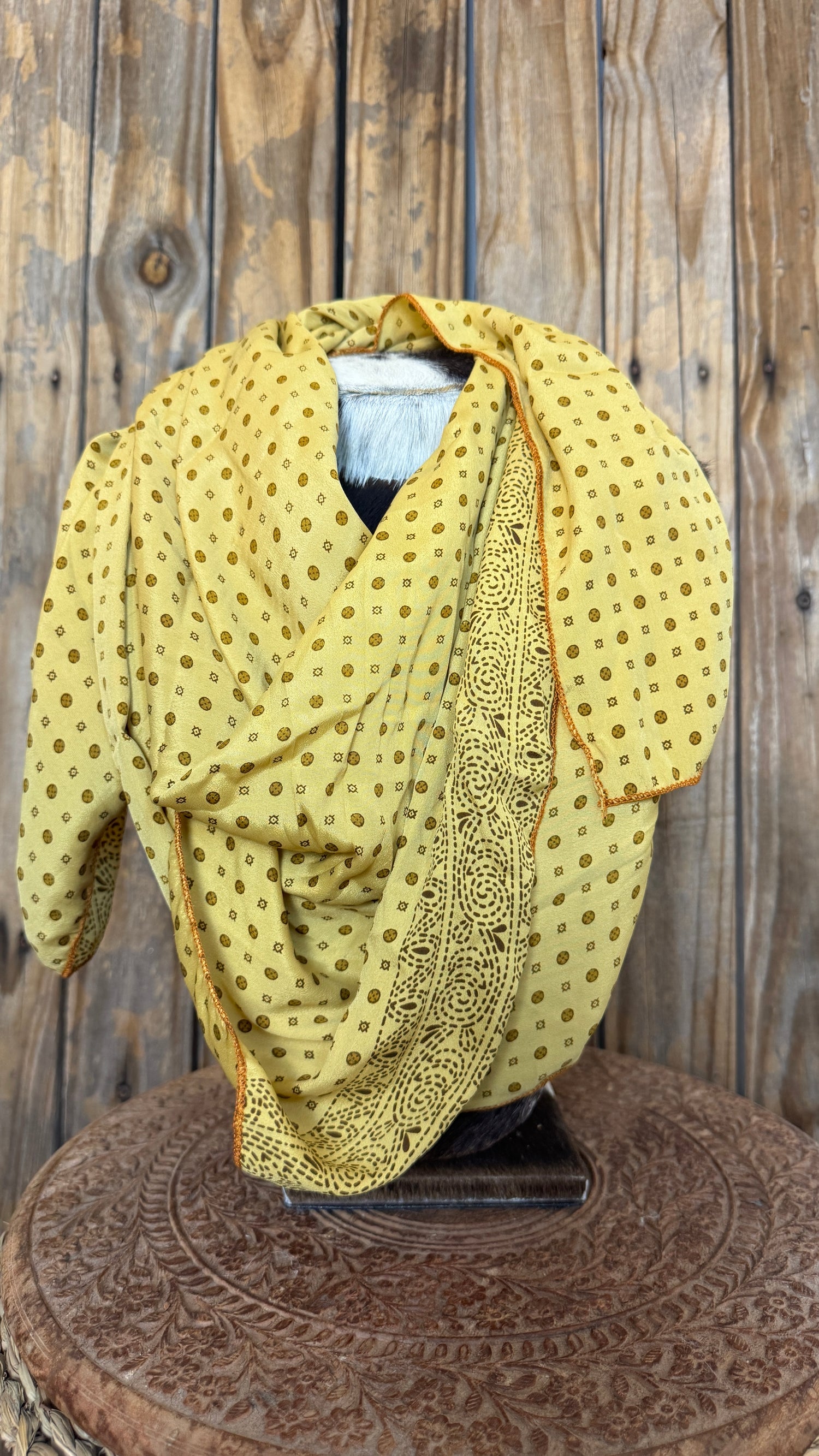 Introducing the ultimate free-spirited accessory, our ethically made Sari Silk Bandanas crafted from upcycled sari silk scraps from northern India. With its 36" by 36" dimensions, this bandana is the perfect modern take on the traditional bandana silhouette.