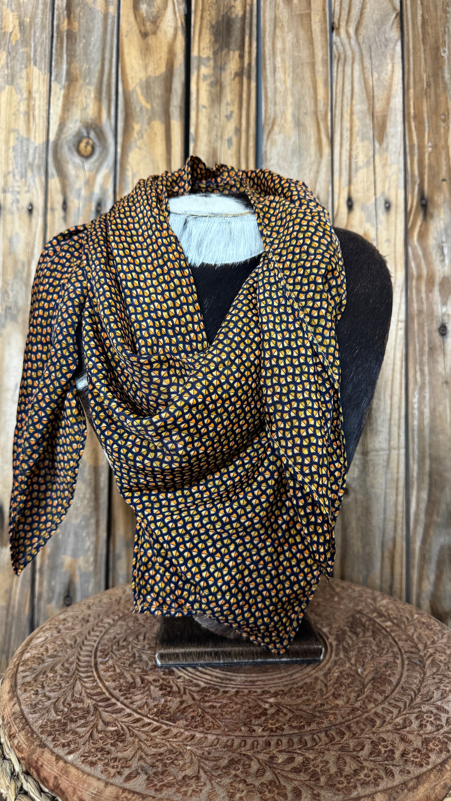 Introducing the ultimate free-spirited accessory, our ethically made Sari Silk Bandanas crafted from upcycled sari silk scraps from northern India. With its 36" by 36" dimensions, this bandana is the perfect modern take on the traditional bandana silhouette.