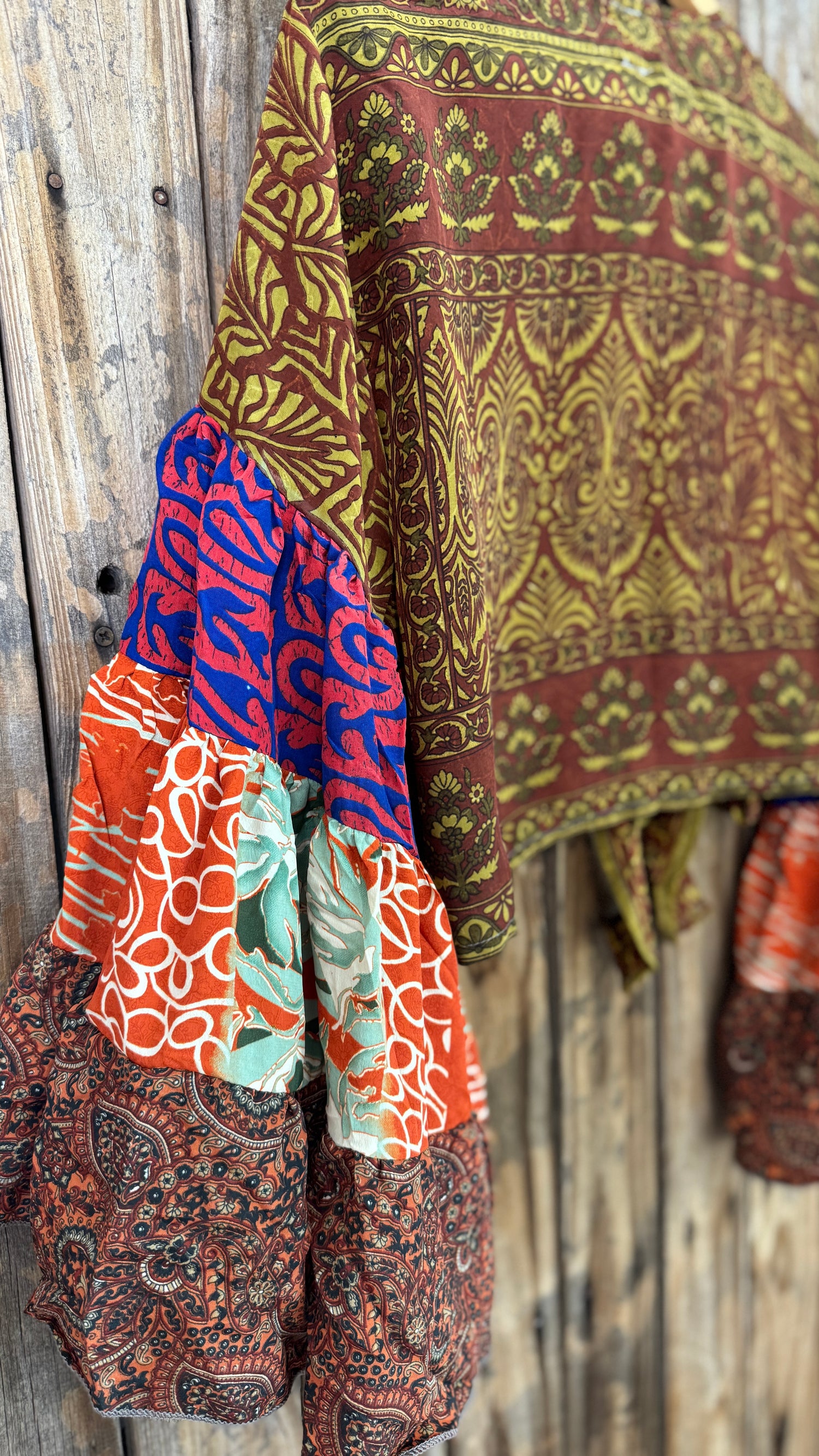 *Please note, each ethically made piece is handmade and fabricated from upcycled textiles. Texture of fabric and measurements may vary from each individual piece, even within the same style of garment; small stray threads, inconsistent coloring, and fabric imperfections are common with this style and do not indicate a flaw. Many of our items have lived a life long before reaching your closet, so each piece is unique and may come with slight imperfections (such as minor stains and inconsistencies in pattern, thinning areas or small holes/repairs, and varied texture of silk with each individual garment). We celebrate these one-of-a-kind characteristics, as they do not impact the function of the garment, and encourage you to review all photos and descriptions carefully. As always, please reach out with any questions if you need further clarification. All sales are final. View the entirety of our store policies HERE