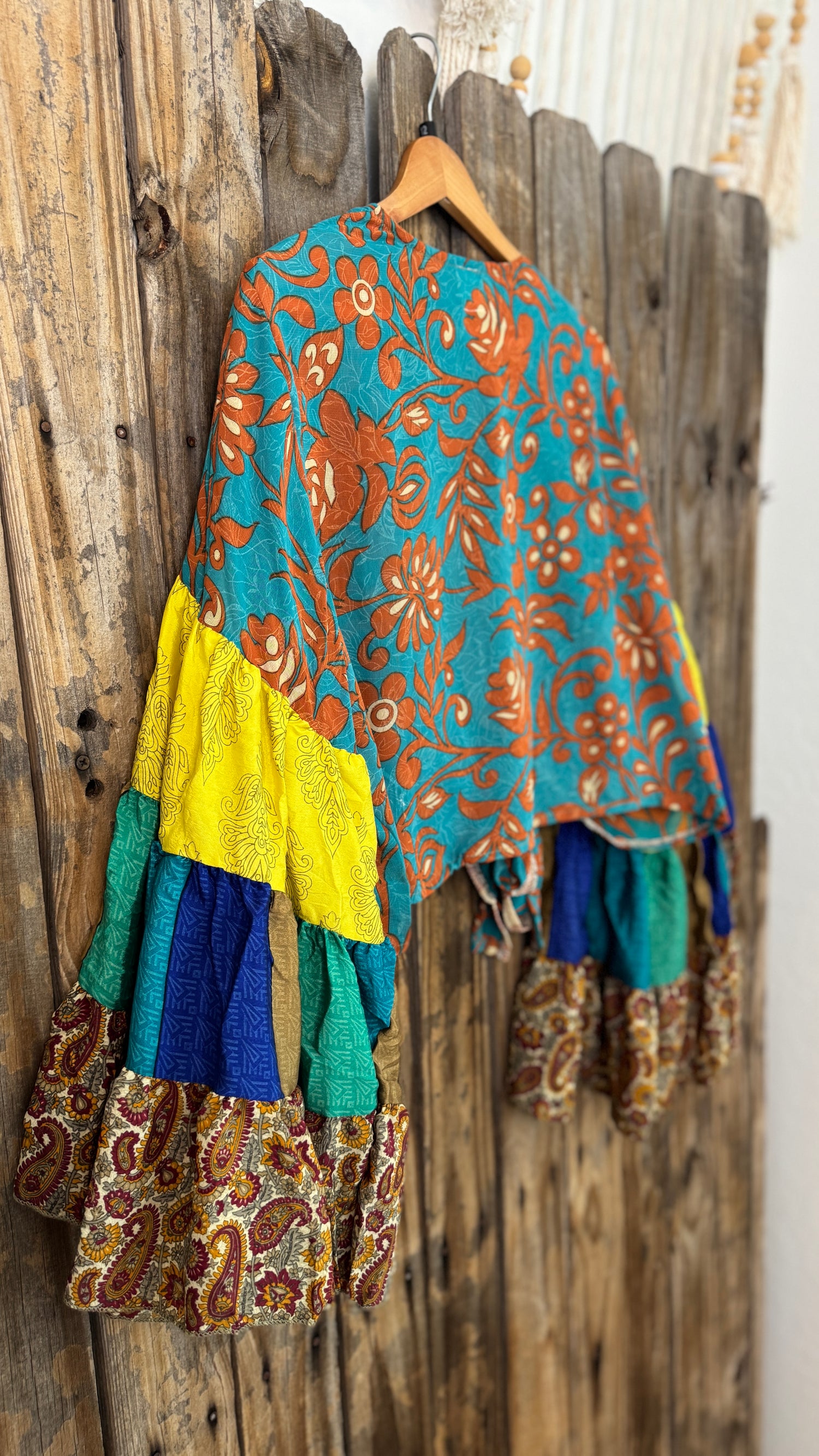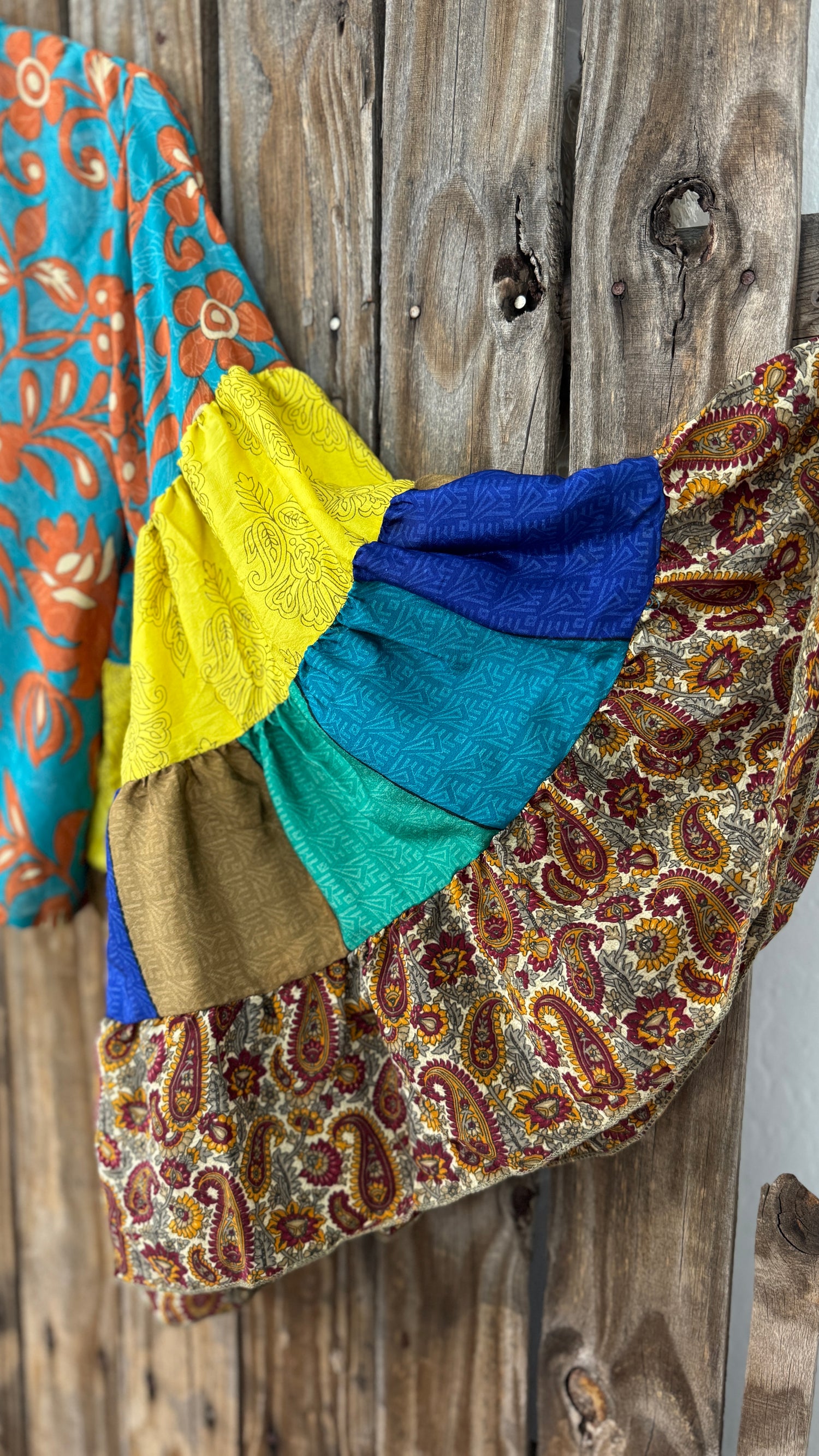 *Please note, each ethically made piece is handmade and fabricated from upcycled textiles. Texture of fabric and measurements may vary from each individual piece, even within the same style of garment; small stray threads, inconsistent coloring, and fabric imperfections are common with this style and do not indicate a flaw. Many of our items have lived a life long before reaching your closet, so each piece is unique and may come with slight imperfections (such as minor stains and inconsistencies in pattern, thinning areas or small holes/repairs, and varied texture of silk with each individual garment). We celebrate these one-of-a-kind characteristics, as they do not impact the function of the garment, and encourage you to review all photos and descriptions carefully. As always, please reach out with any questions if you need further clarification. All sales are final. View the entirety of our store policies HERE