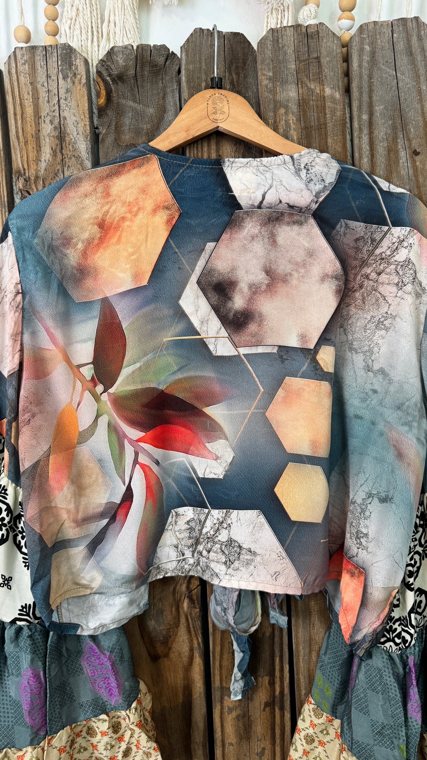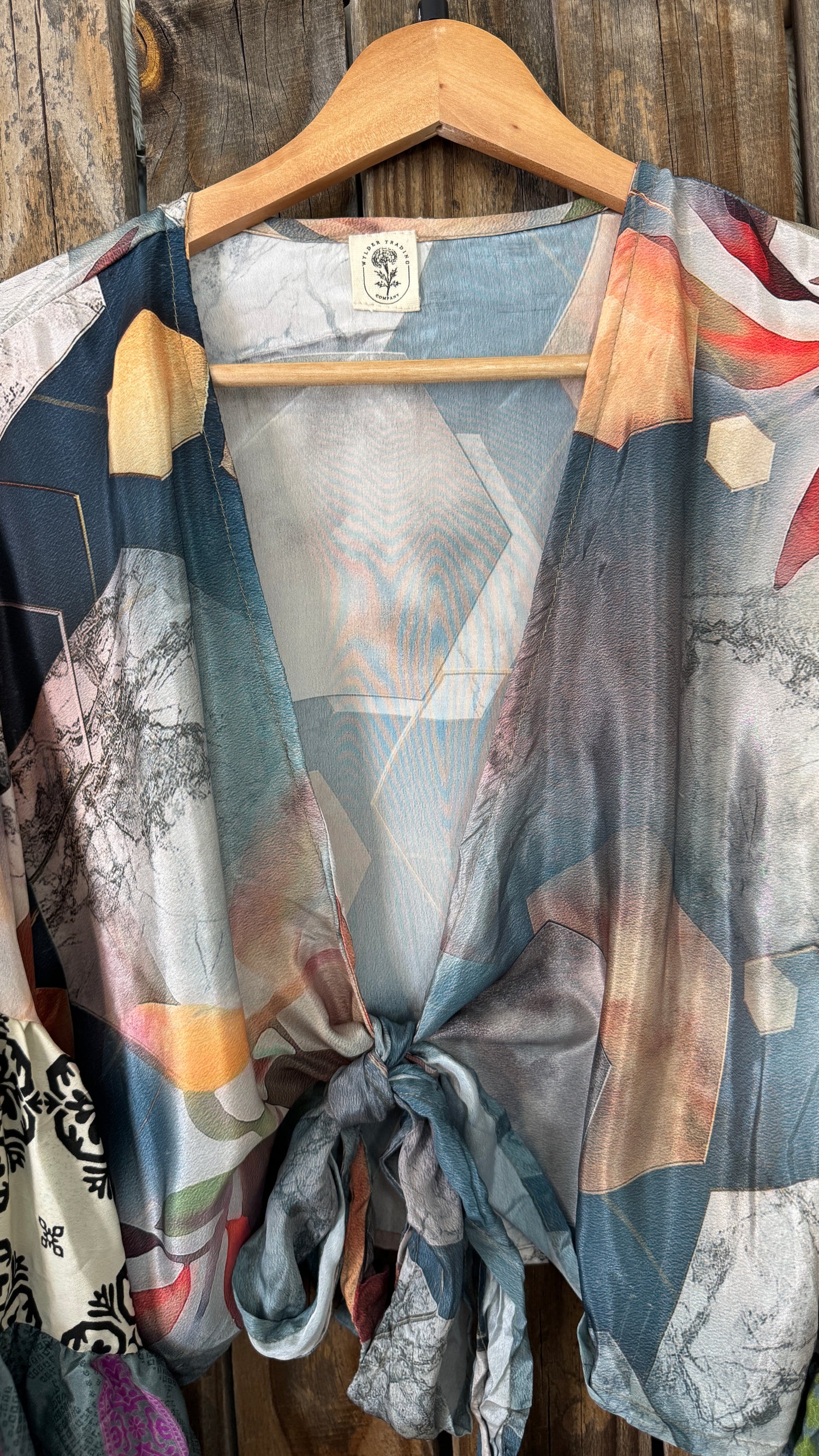 *Please note, each ethically made piece is handmade and fabricated from upcycled textiles. Texture of fabric and measurements may vary from each individual piece, even within the same style of garment; small stray threads, inconsistent coloring, and fabric imperfections are common with this style and do not indicate a flaw. Many of our items have lived a life long before reaching your closet, so each piece is unique and may come with slight imperfections (such as minor stains and inconsistencies in pattern, thinning areas or small holes/repairs, and varied texture of silk with each individual garment). We celebrate these one-of-a-kind characteristics, as they do not impact the function of the garment, and encourage you to review all photos and descriptions carefully. As always, please reach out with any questions if you need further clarification. All sales are final. View the entirety of our store policies HERE.