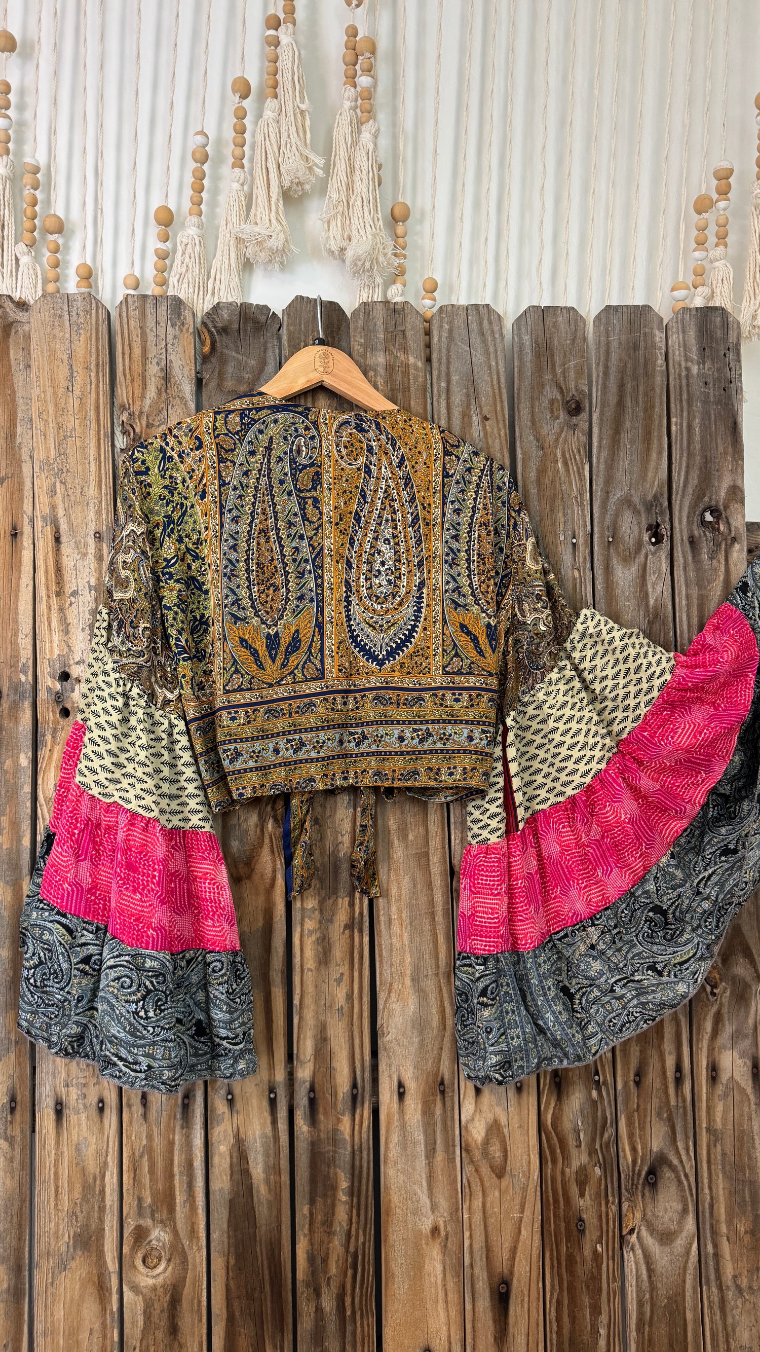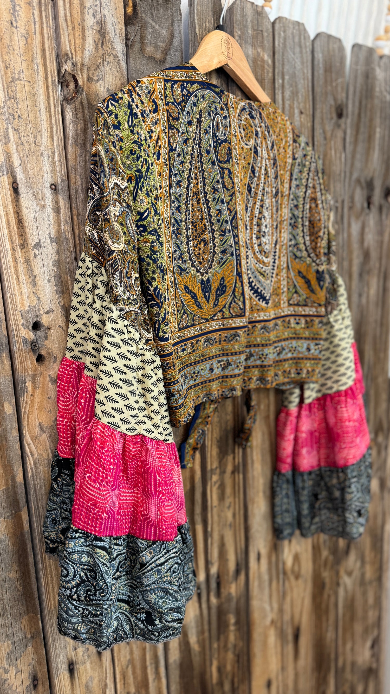 *Please note, each ethically made piece is handmade and fabricated from upcycled textiles. Texture of fabric and measurements may vary from each individual piece, even within the same style of garment; small stray threads, inconsistent coloring, and fabric imperfections are common with this style and do not indicate a flaw. Many of our items have lived a life long before reaching your closet, so each piece is unique and may come with slight imperfections (such as minor stains and inconsistencies in pattern, thinning areas or small holes/repairs, and varied texture of silk with each individual garment). We celebrate these one-of-a-kind characteristics, as they do not impact the function of the garment, and encourage you to review all photos and descriptions carefully. As always, please reach out with any questions if you need further clarification. All sales are final. View the entirety of our store policies HERE.