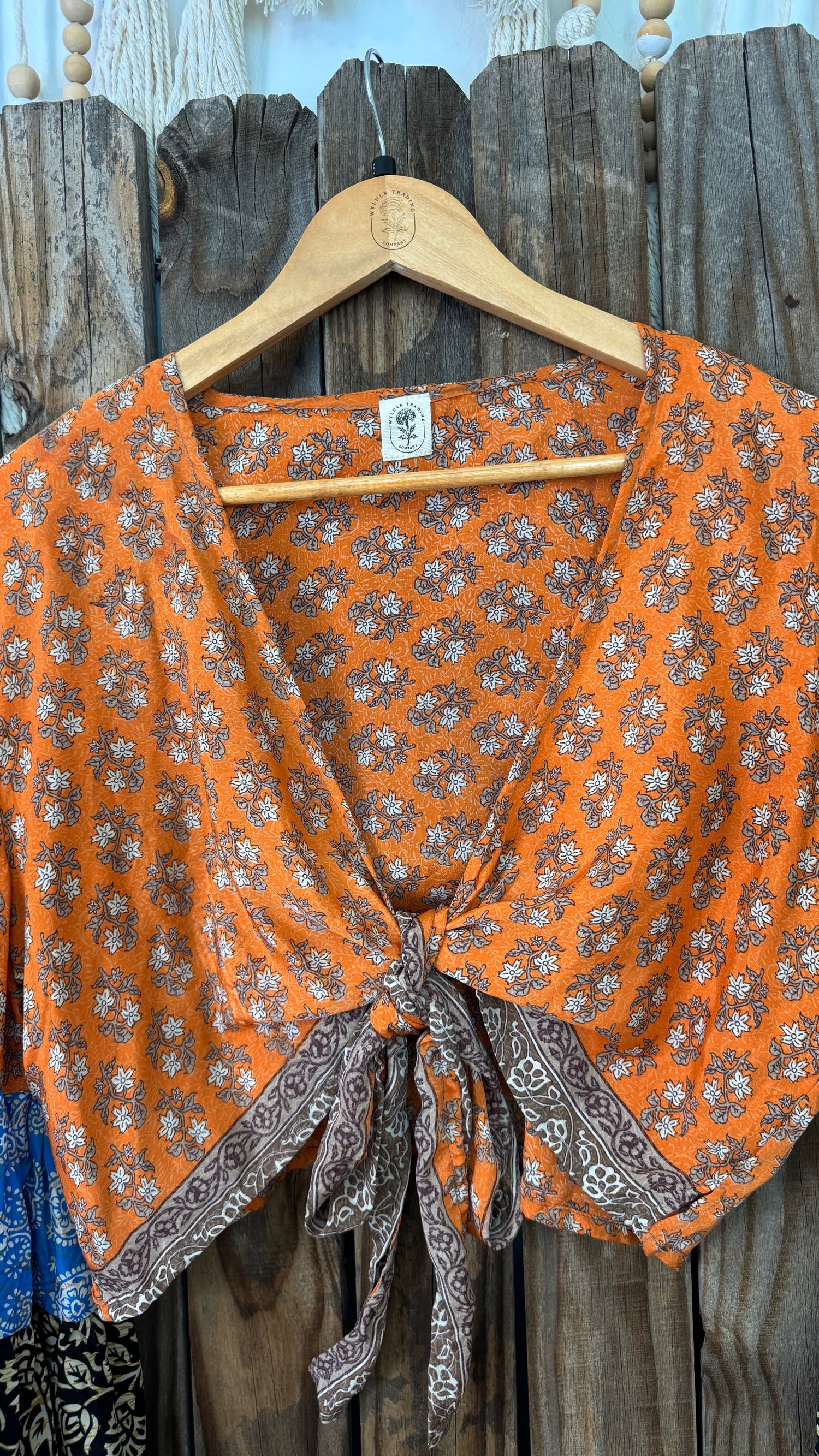 *Please note, each ethically made piece is handmade and fabricated from upcycled textiles. Texture of fabric and measurements may vary from each individual piece, even within the same style of garment; small stray threads, inconsistent coloring, and fabric imperfections are common with this style and do not indicate a flaw. Many of our items have lived a life long before reaching your closet, so each piece is unique and may come with slight imperfections (such as minor stains and inconsistencies in pattern, thinning areas or small holes/repairs, and varied texture of silk with each individual garment). We celebrate these one-of-a-kind characteristics, as they do not impact the function of the garment, and encourage you to review all photos and descriptions carefully. As always, please reach out with any questions if you need further clarification. All sales are final. View the entirety of our store policies HERE