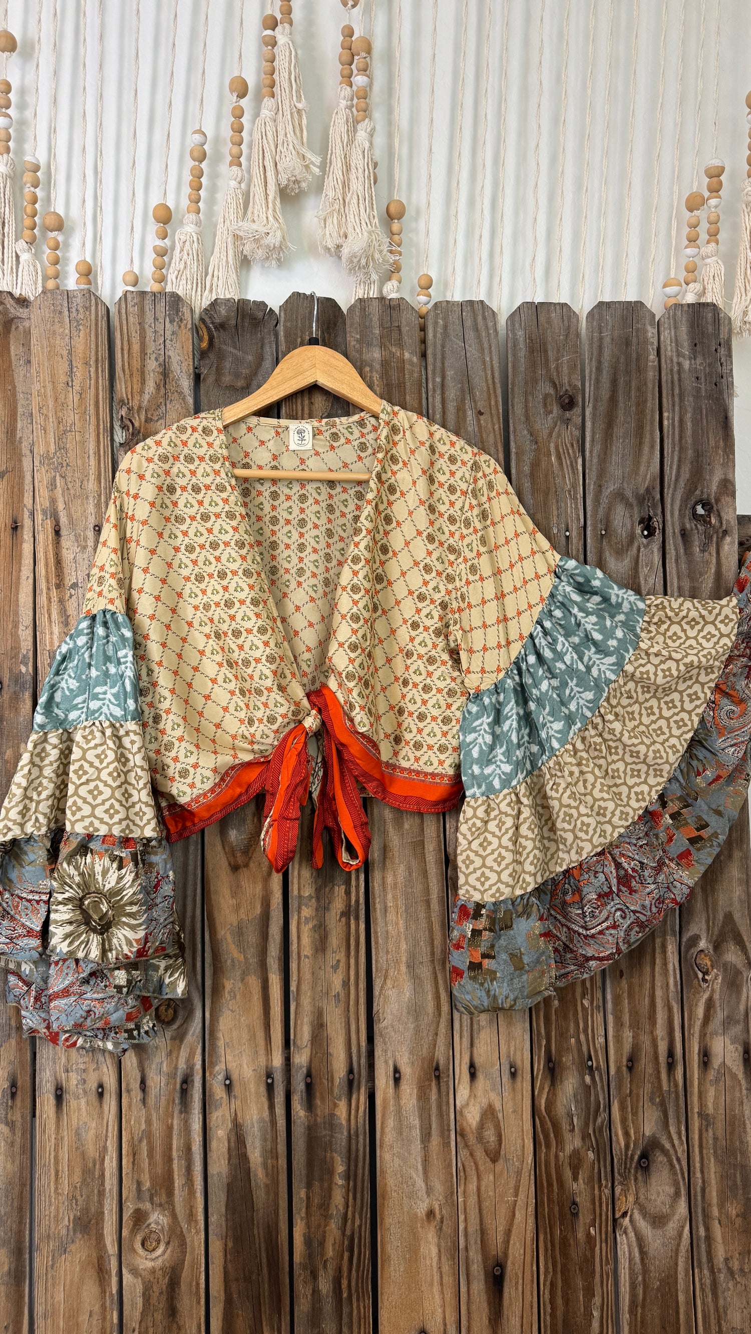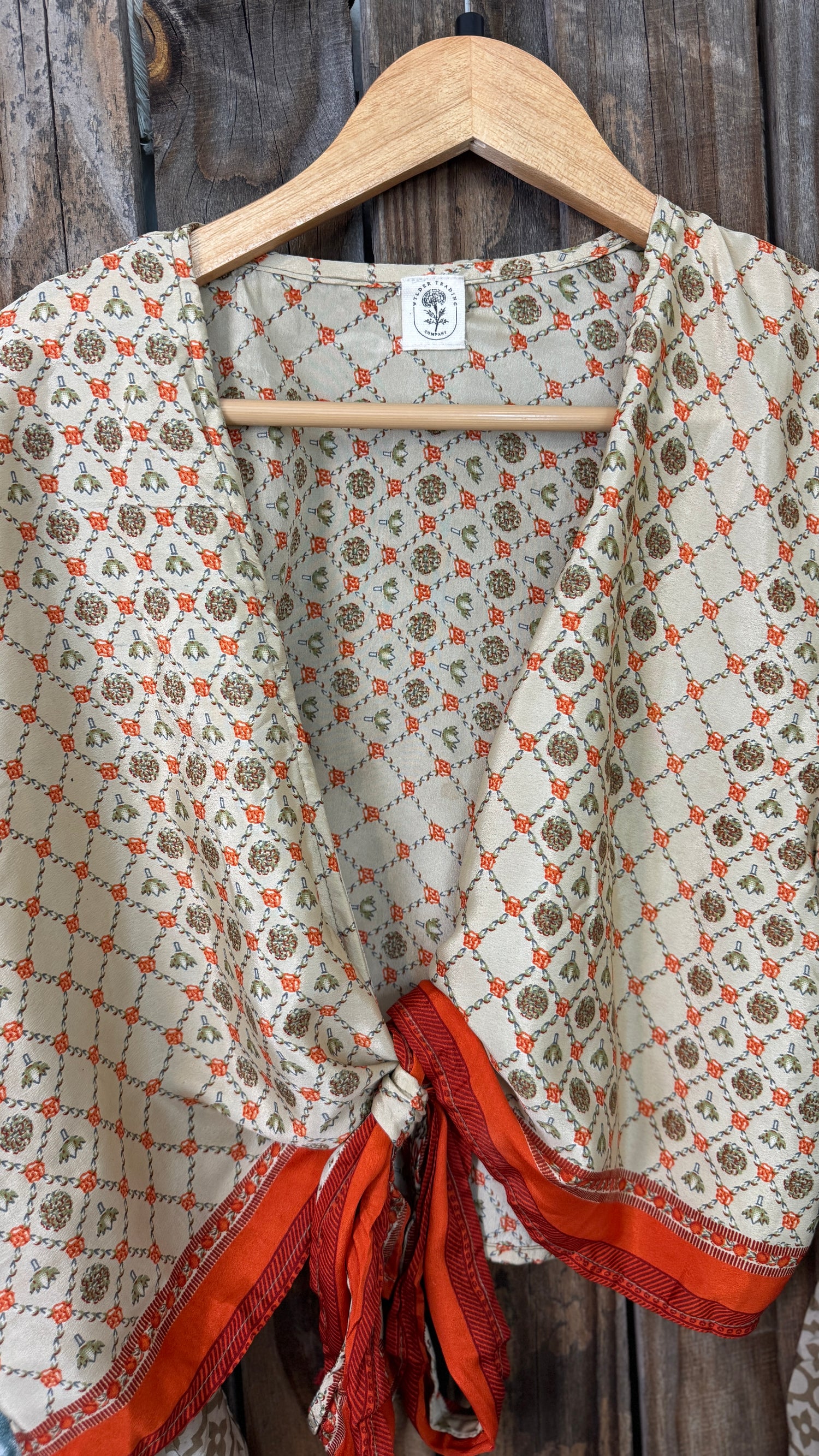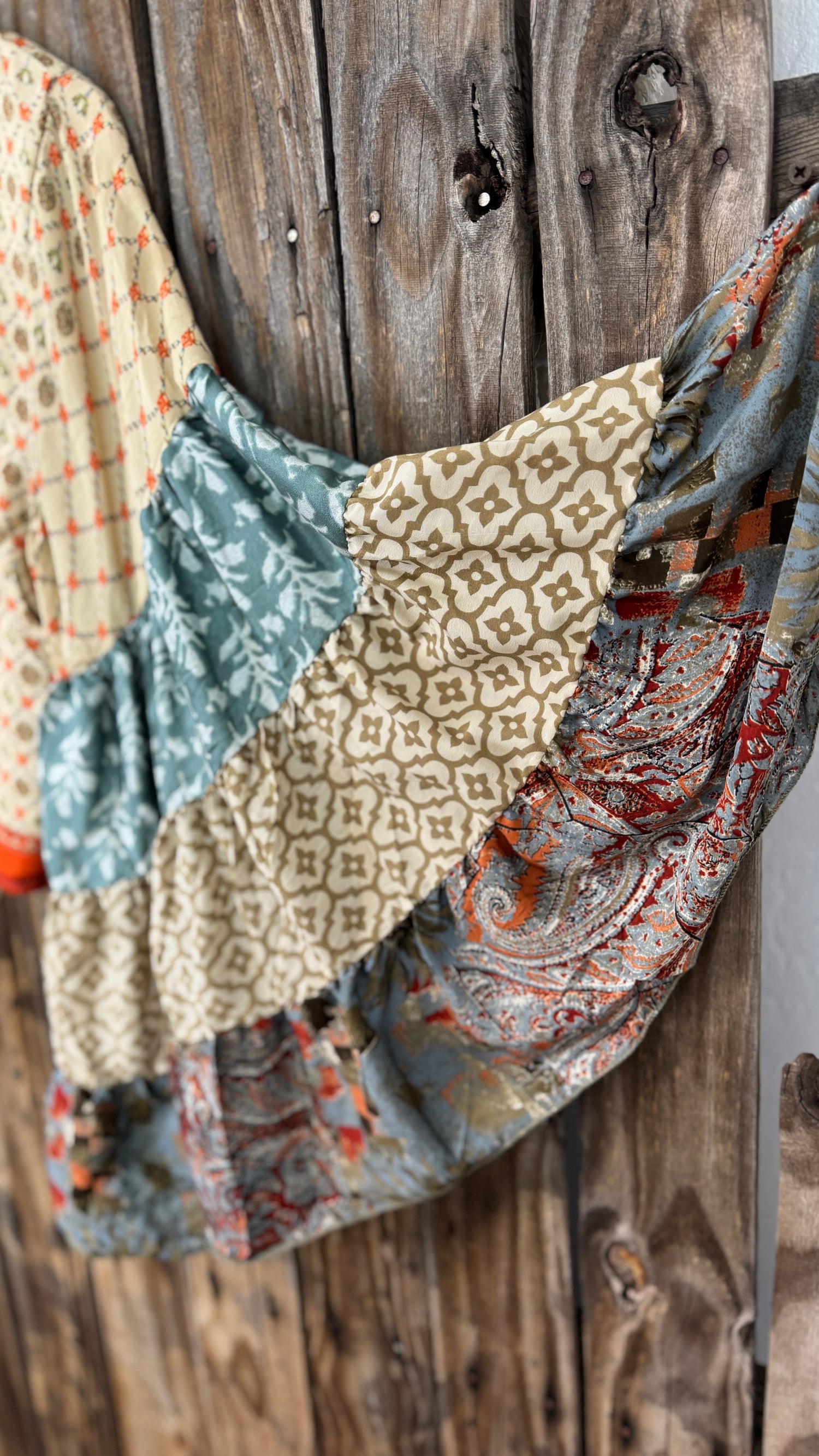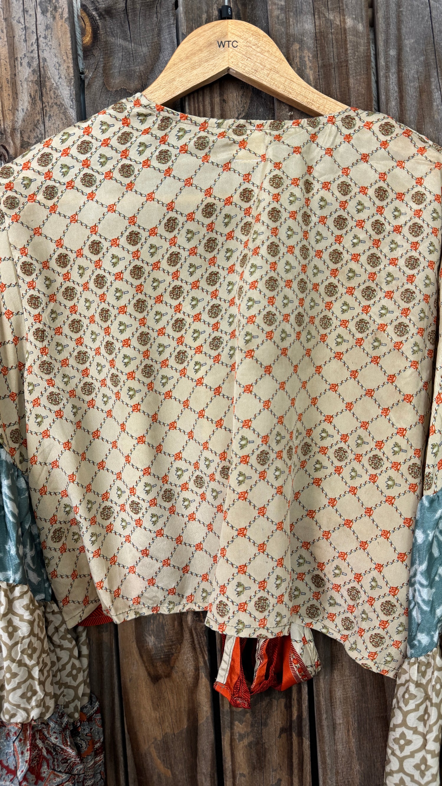 *Please note, each ethically made piece is handmade and fabricated from upcycled textiles. Texture of fabric and measurements may vary from each individual piece, even within the same style of garment; small stray threads, inconsistent coloring, and fabric imperfections are common with this style and do not indicate a flaw. Many of our items have lived a life long before reaching your closet, so each piece is unique and may come with slight imperfections (such as minor stains and inconsistencies in pattern, thinning areas or small holes/repairs, and varied texture of silk with each individual garment). We celebrate these one-of-a-kind characteristics, as they do not impact the function of the garment, and encourage you to review all photos and descriptions carefully. As always, please reach out with any questions if you need further clarification. All sales are final. View the entirety of our store policies HERE.